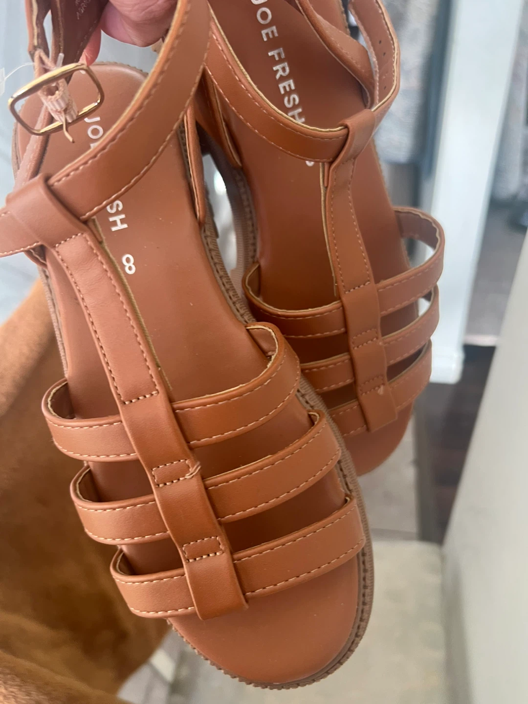 These Joe Fresh gladiator sandals are a stylish addition to any wardrobe! They come in a beautiful brown colour and are a size 8. Perfect for summer outings or casual wear!