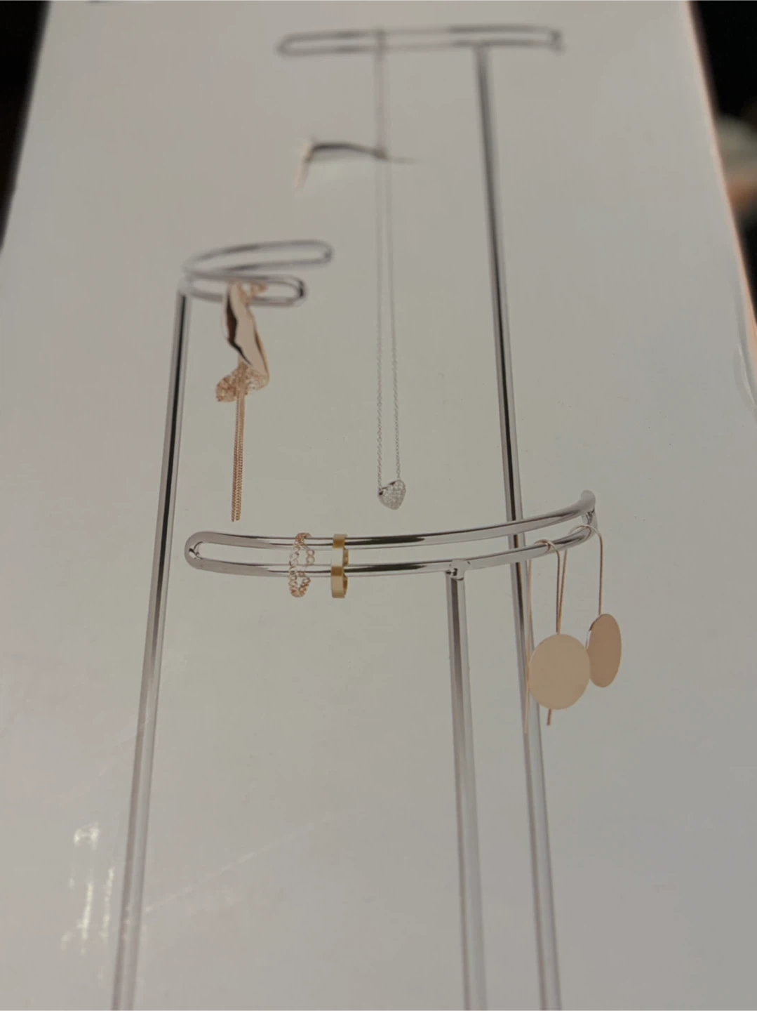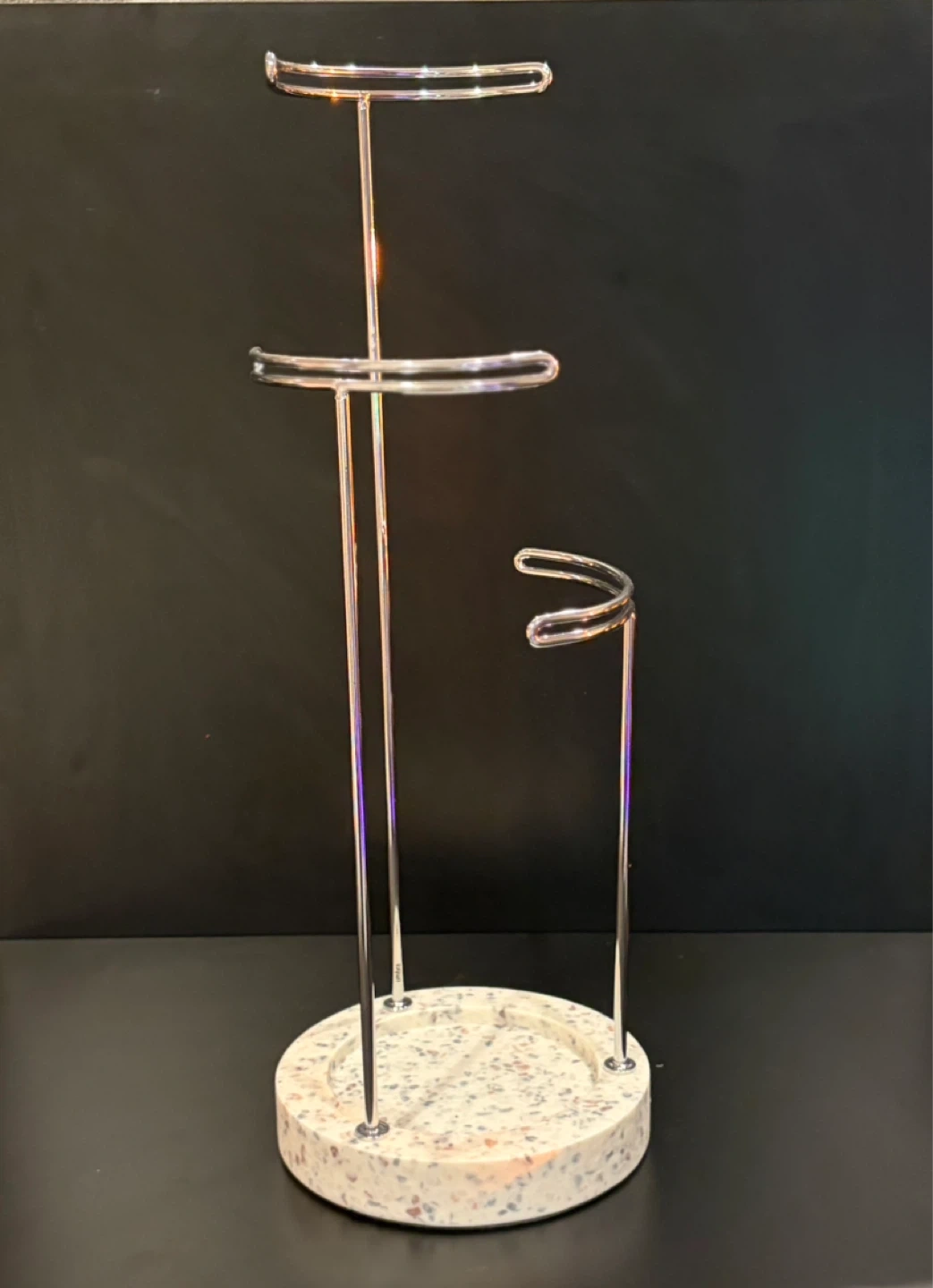 Selling a jewelry stand with a terrazzo base! It's in great condition and comes with the original box. Perfect for keeping your necklaces, bracelets, and earrings organized