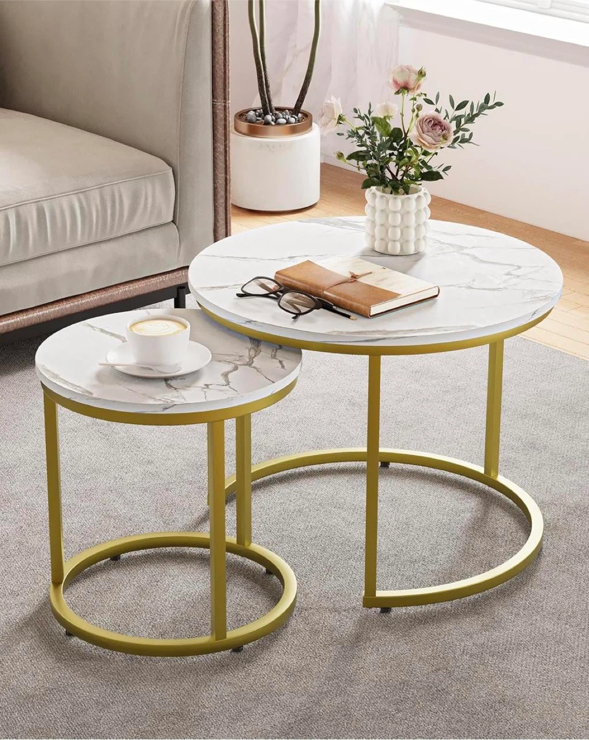 Nesting Coffee Tables - Marble Top, Gold Frame