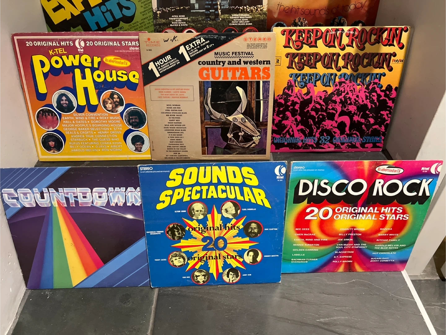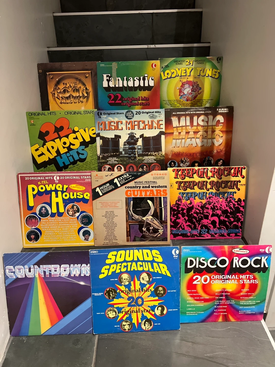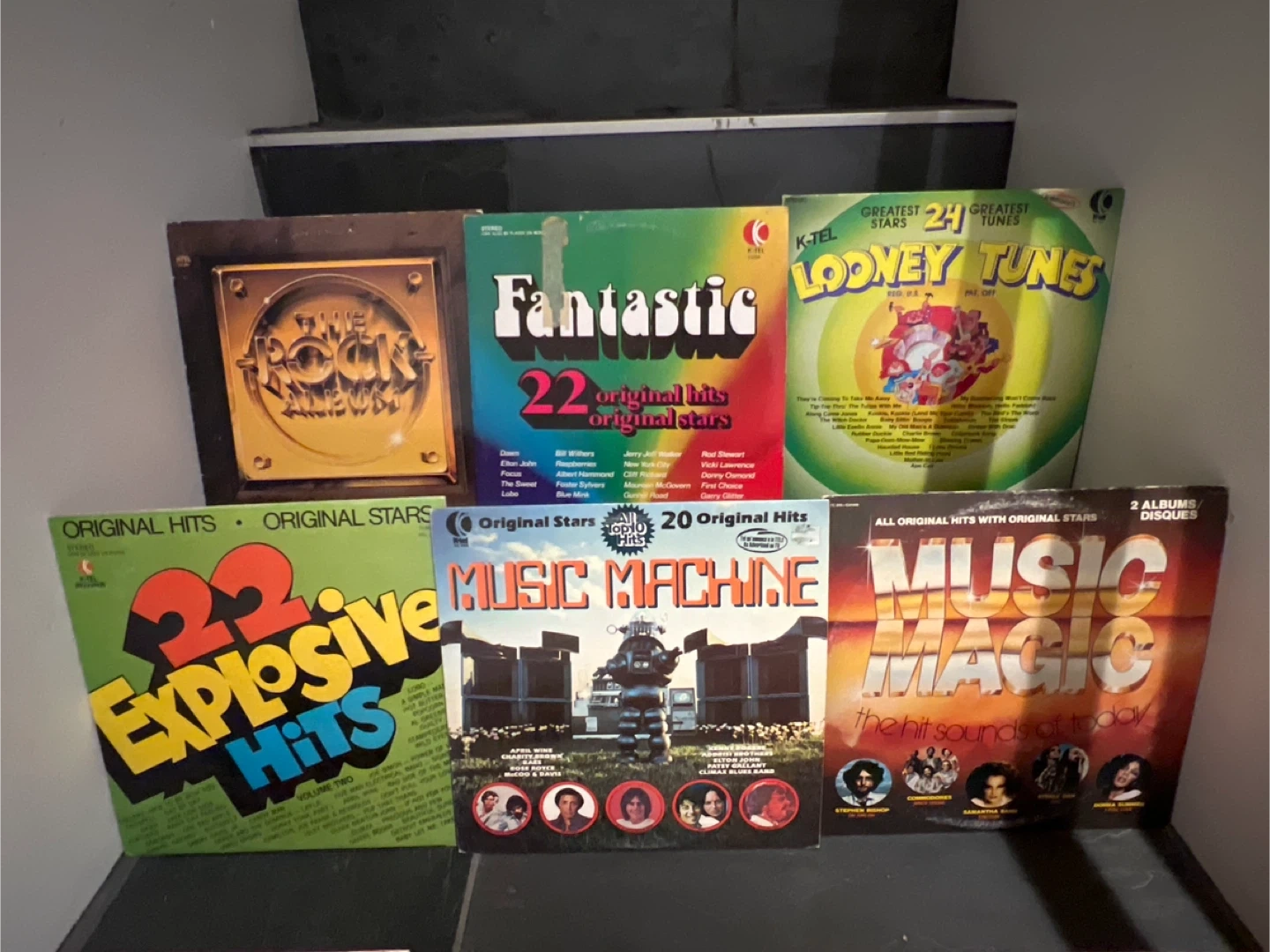 Selling a collection of vintage vinyl records! There's a variety of titles, including 'Fantastic 22 Original Hits Original Stars', 'Music Machine 20 Original Hits', 'Music Magic the Hit Sounds of Today', 'Power House 20 Original Hits', 'Sounds Spectacular 20 Original Stars', and more! Perfect for collectors or anyone looking to add some retro tunes to their collection