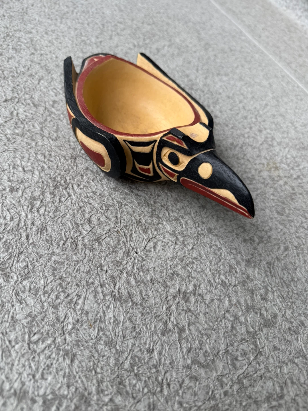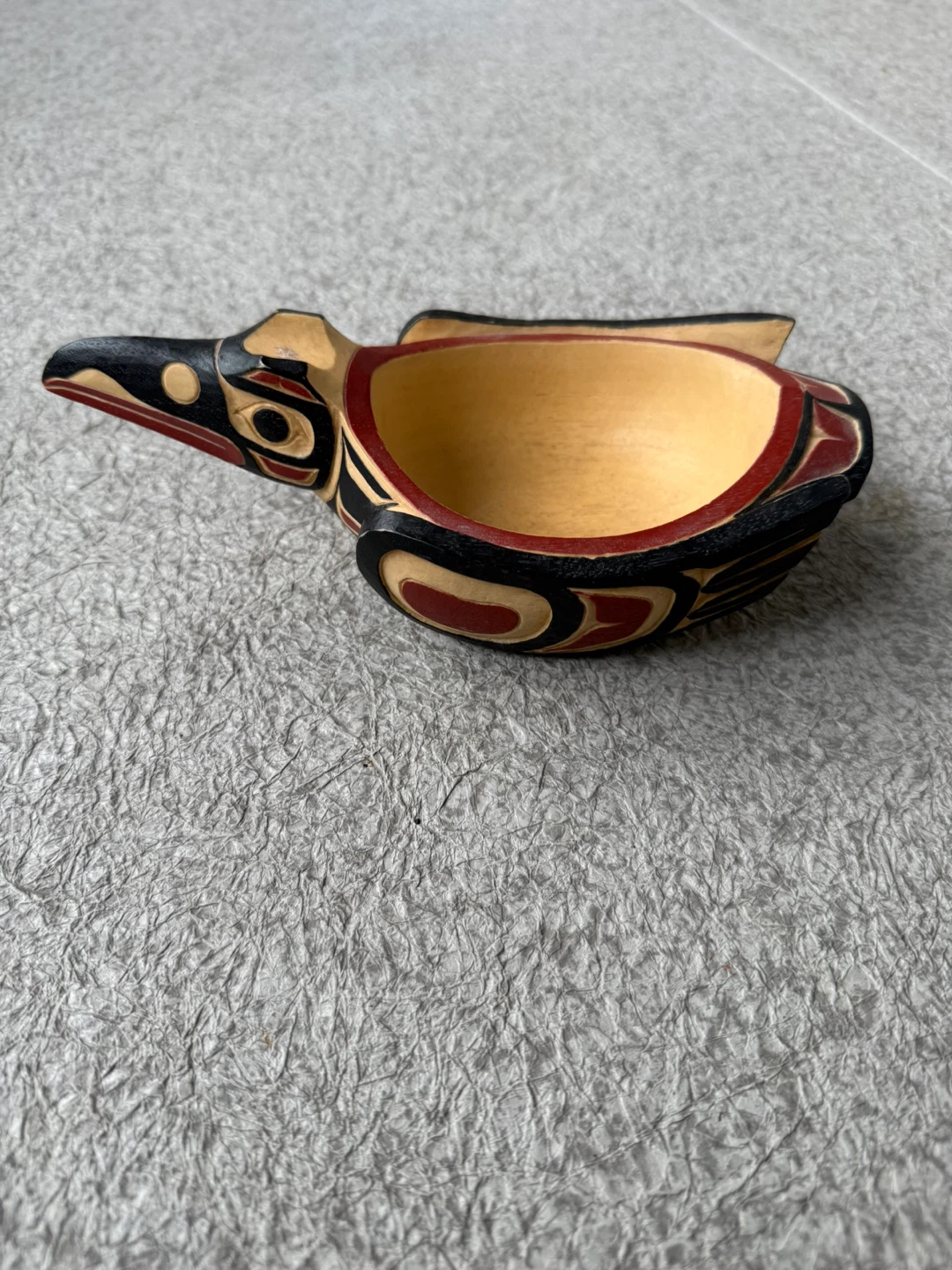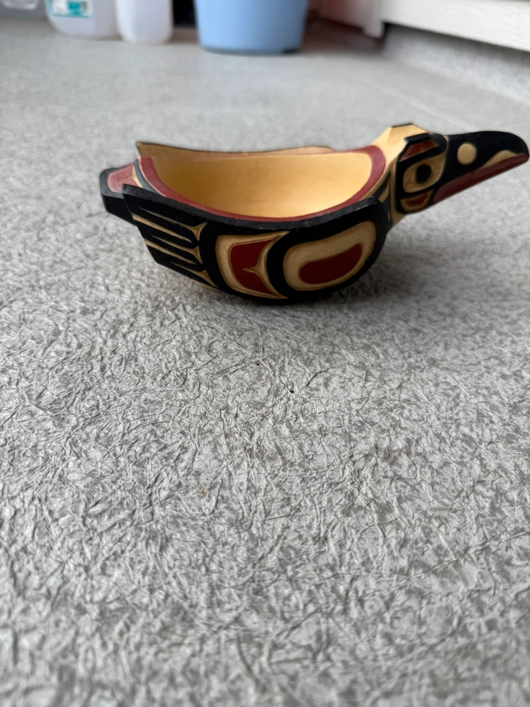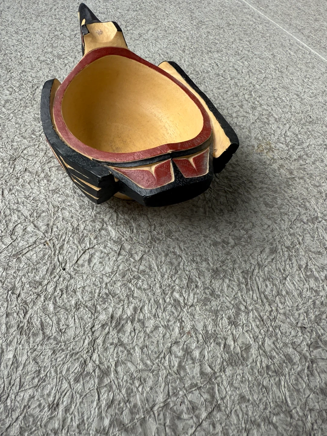 Selling a beautiful First Nations carved wooden bowl. It features traditional designs and would make a lovely addition to any home!