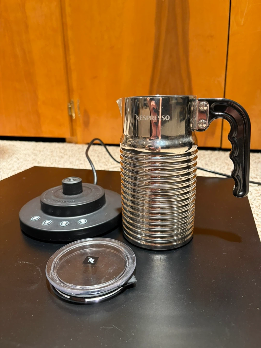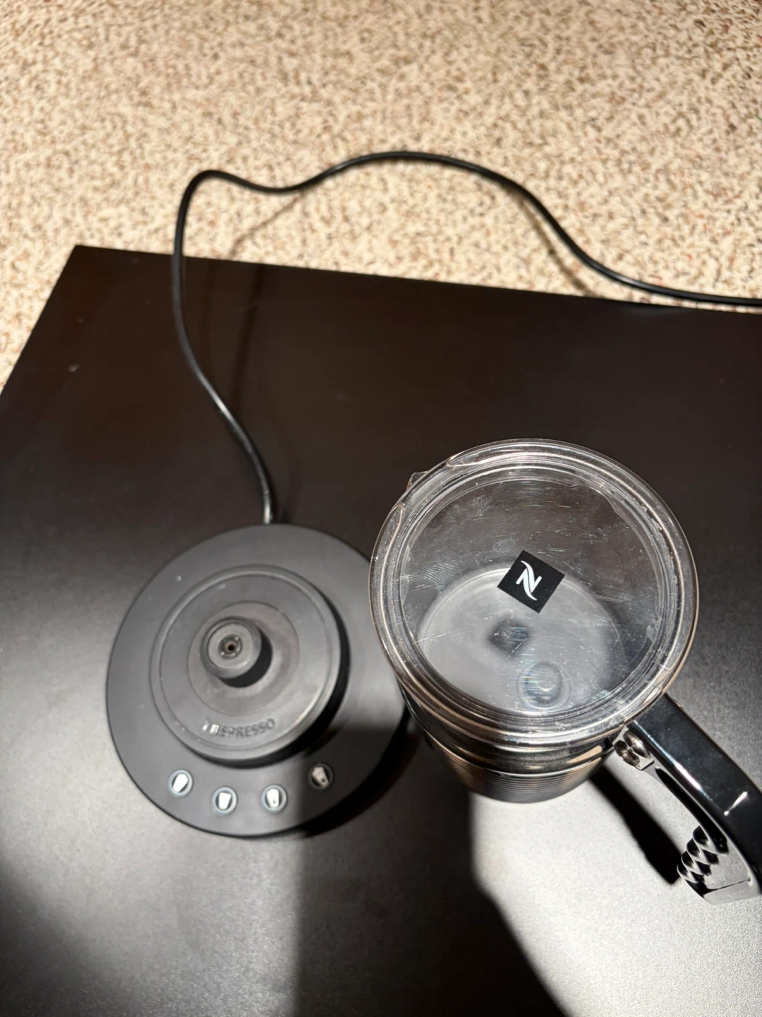 Selling a Nespresso Aeroccino milk frother. It's in great condition but is missing the magnetic frother piece. I’m sure these can be purchased from Nespresso on their site for a couple bucks!