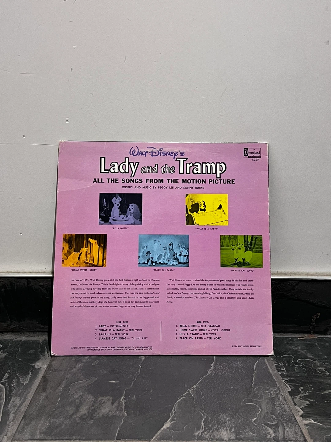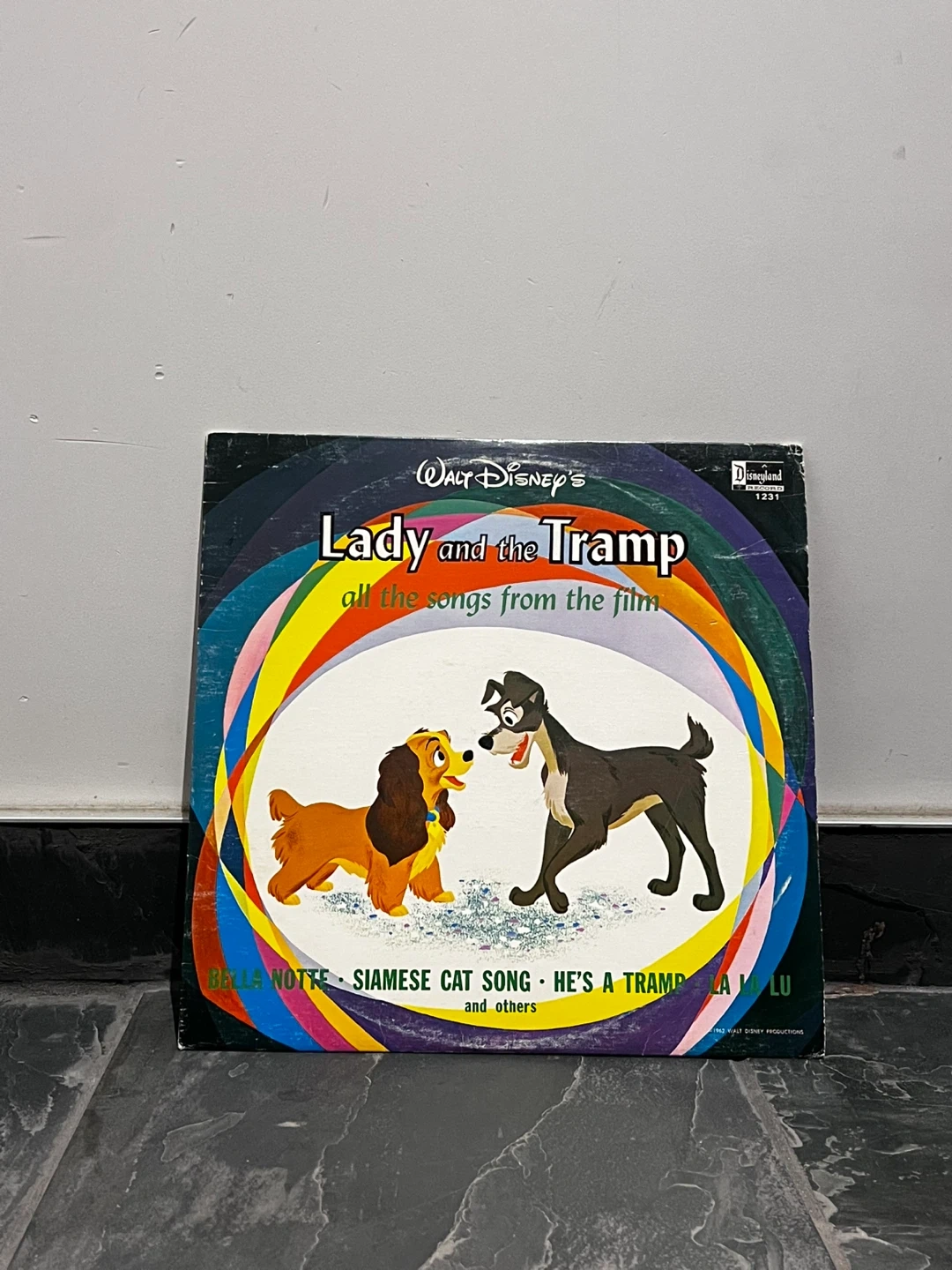Selling a vinyl record of Walt Disney's Lady and the Tramp, featuring all the songs from the film. A classic soundtrack for any Disney fan!