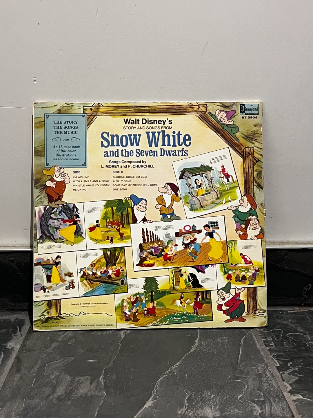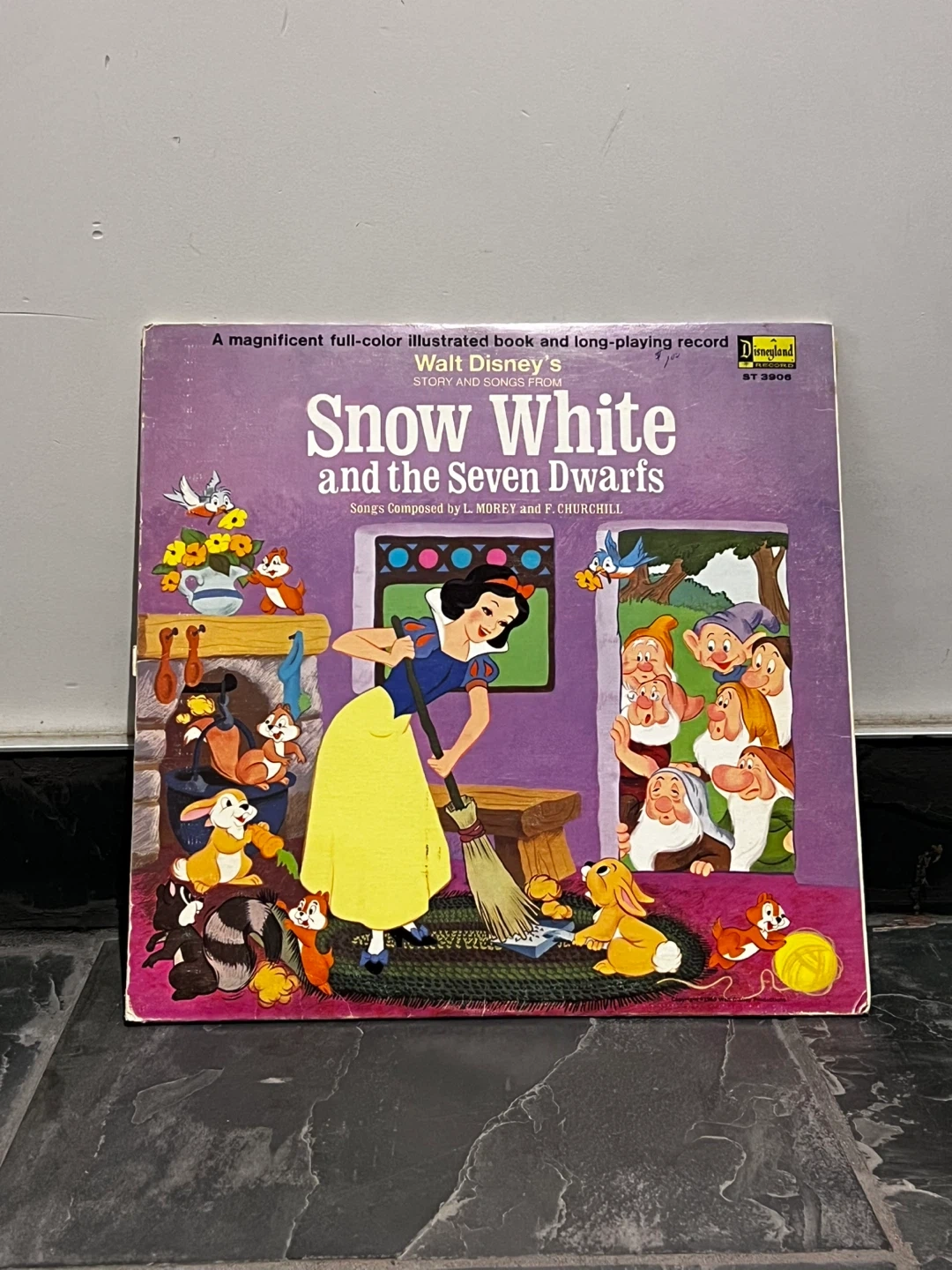 Selling a vintage Walt Disney's Snow White and the Seven Dwarfs record and story book! It's a full-color illustrated book with a long-playing record. Songs composed by L. Morey and F. Churchill.