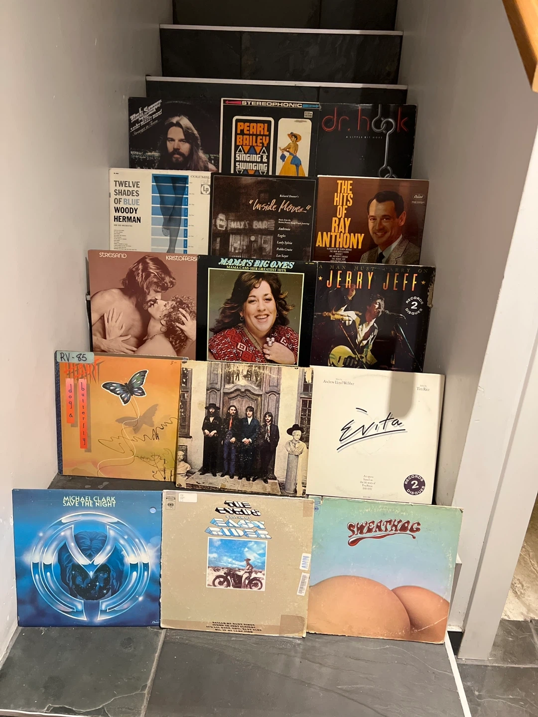 Titles include Pearl Bailey, Dr. Hook, Woody Herman, Ray Anthony, Kristoffers, Jerry Jeff, Heart, Evita, and more! Please see photos for details
