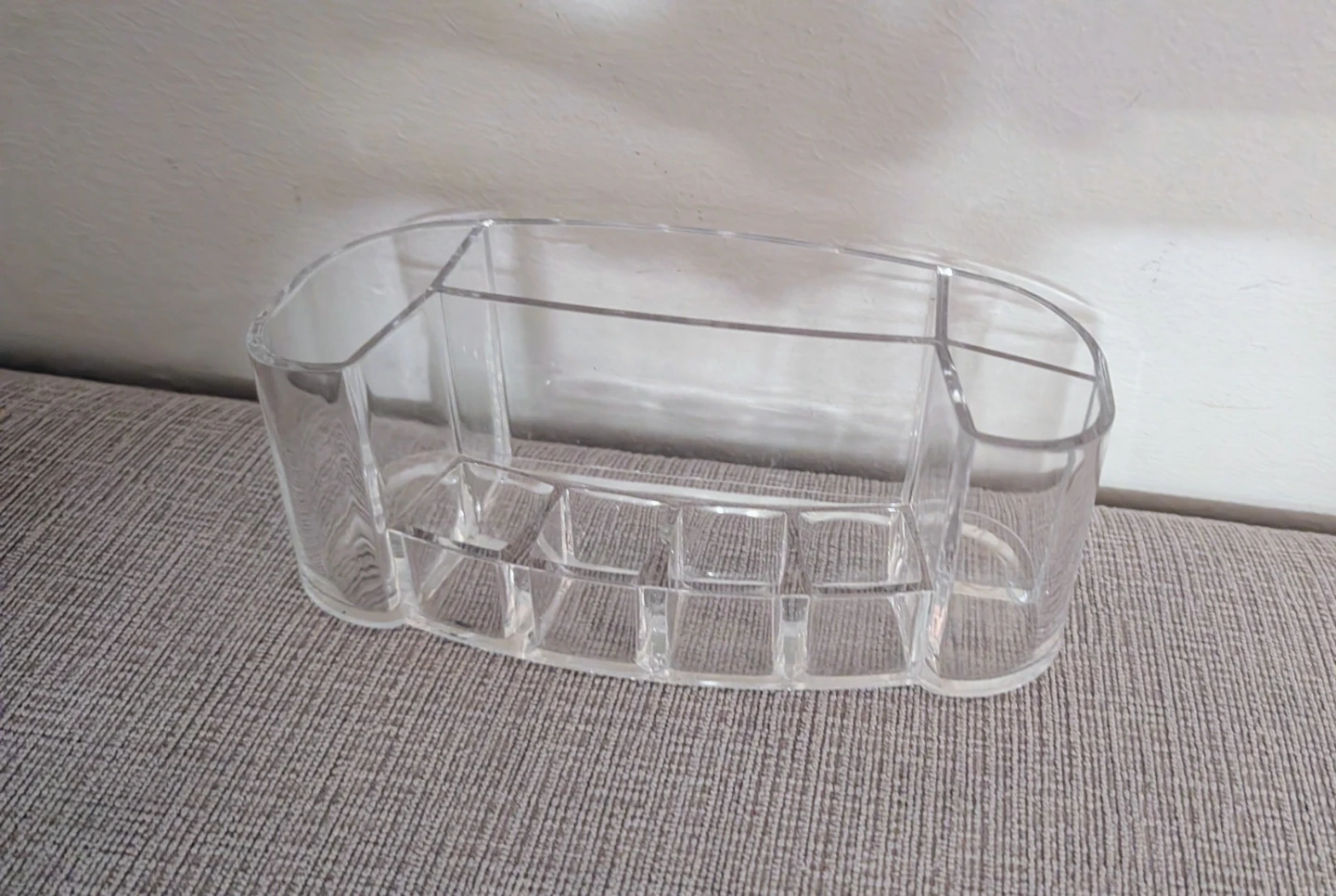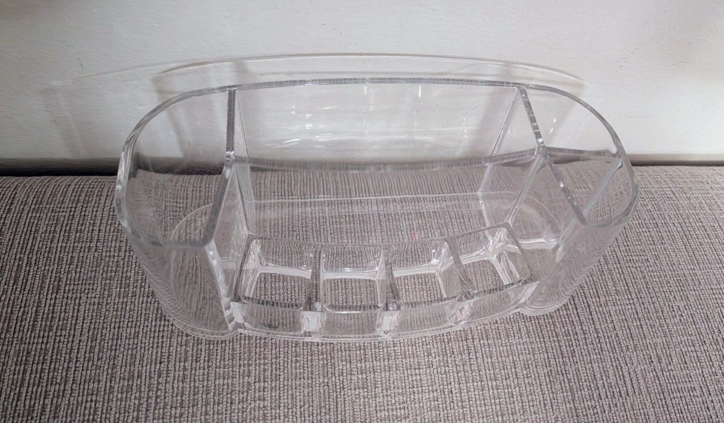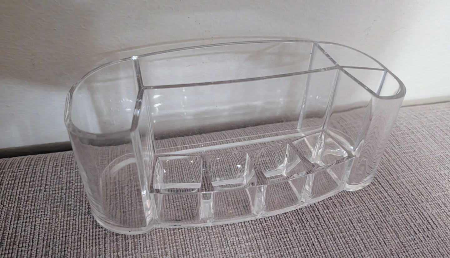 Selling a clear acrylic makeup organizer! It's perfect for keeping your cosmetics neat and tidy. It has multiple compartments to store different items like lipsticks, brushes, and palettes. It's in great condition and ready to use
