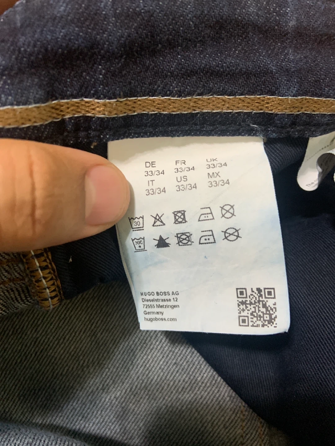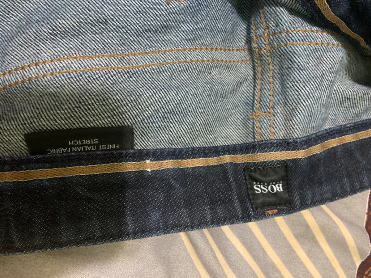 Selling a pair of Hugo Boss jeans in size 33/34. They're a nice dark wash and in great condition. The material is a finest Italian fabric with stretch for extra comfort!