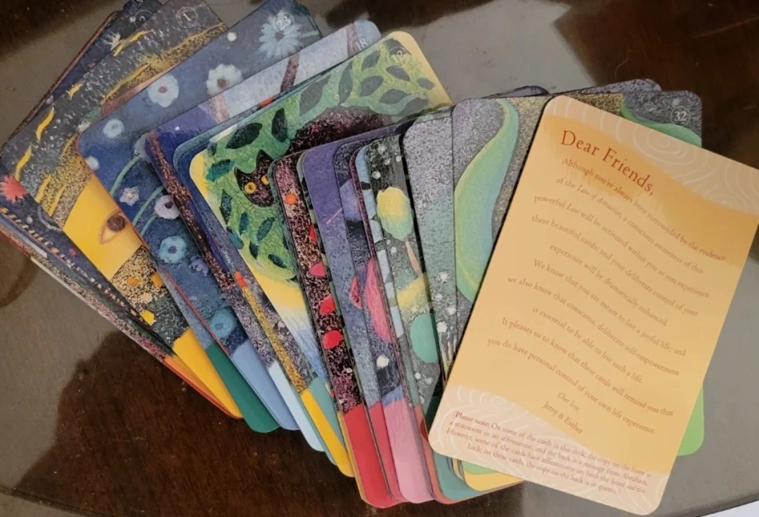 Selling a 60-card deck of The Law of Attraction Cards by Esther and Jerry Hicks (The Teachings of Abraham™). This deck is designed to help you activate the Law of Attraction in your life through beautiful and meaningful cards. Perfect for anyone interested in self-improvement and personal growth!