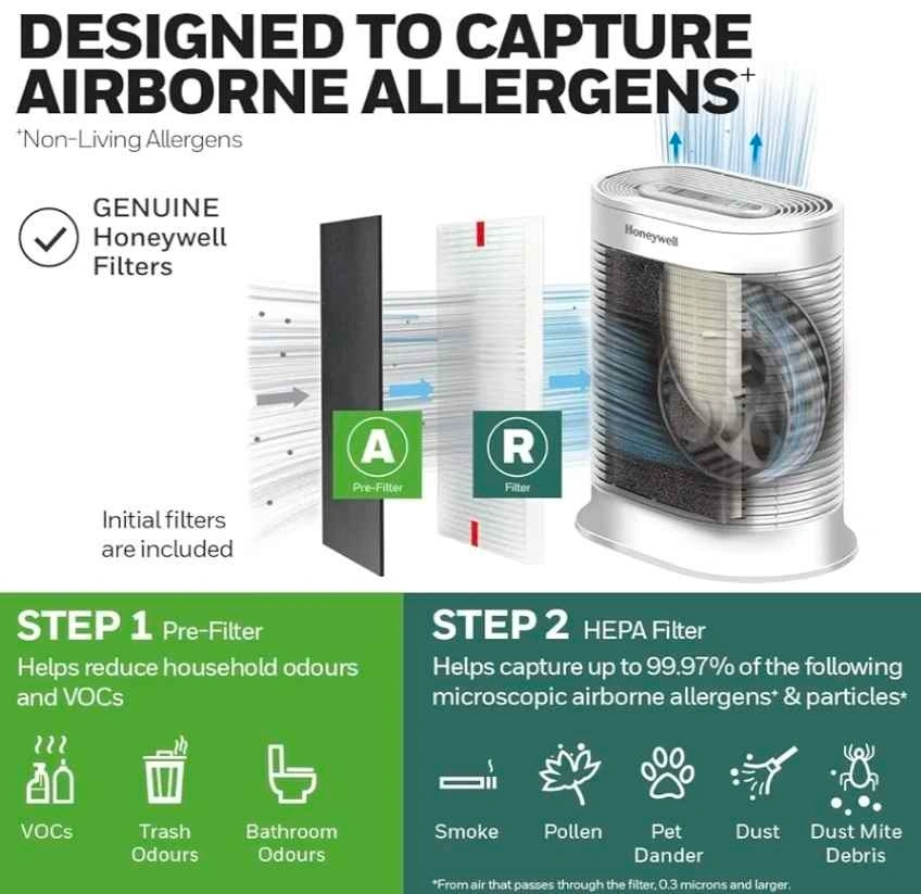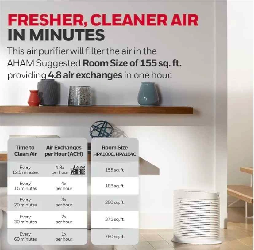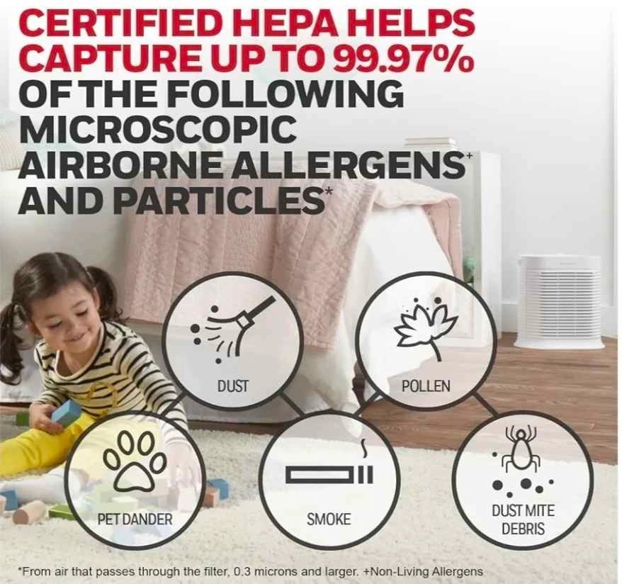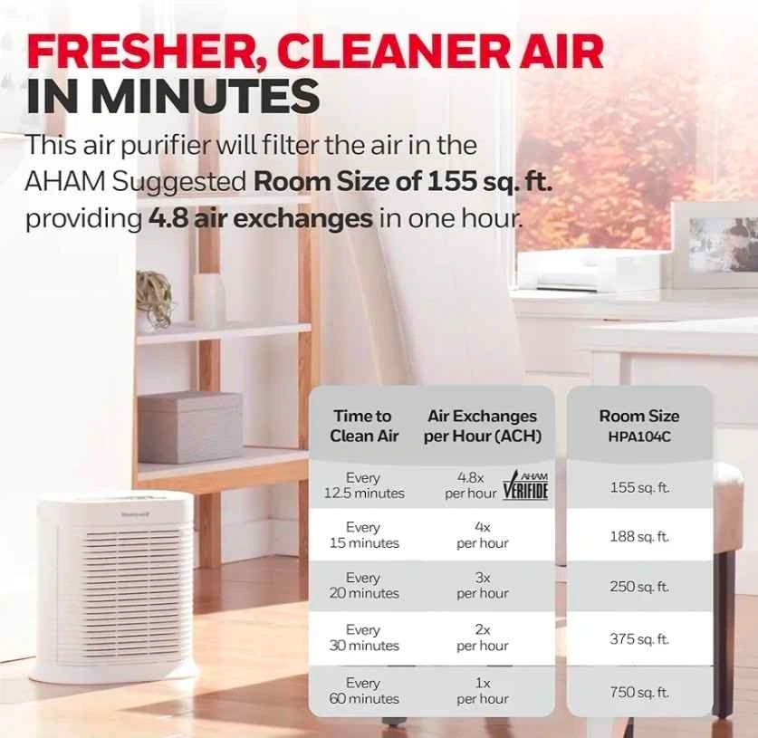 Honeywell HPA104C True HEPA Air Purifier Medium Room, Allergen Remover, Cleans Up To 750 Sq Ft in 1 Hour, Capture 99.97% of Wildfire/Smoke, Dust, Pollen, Pet Dander, Reduce 99.9% Virus, Bacteria, White