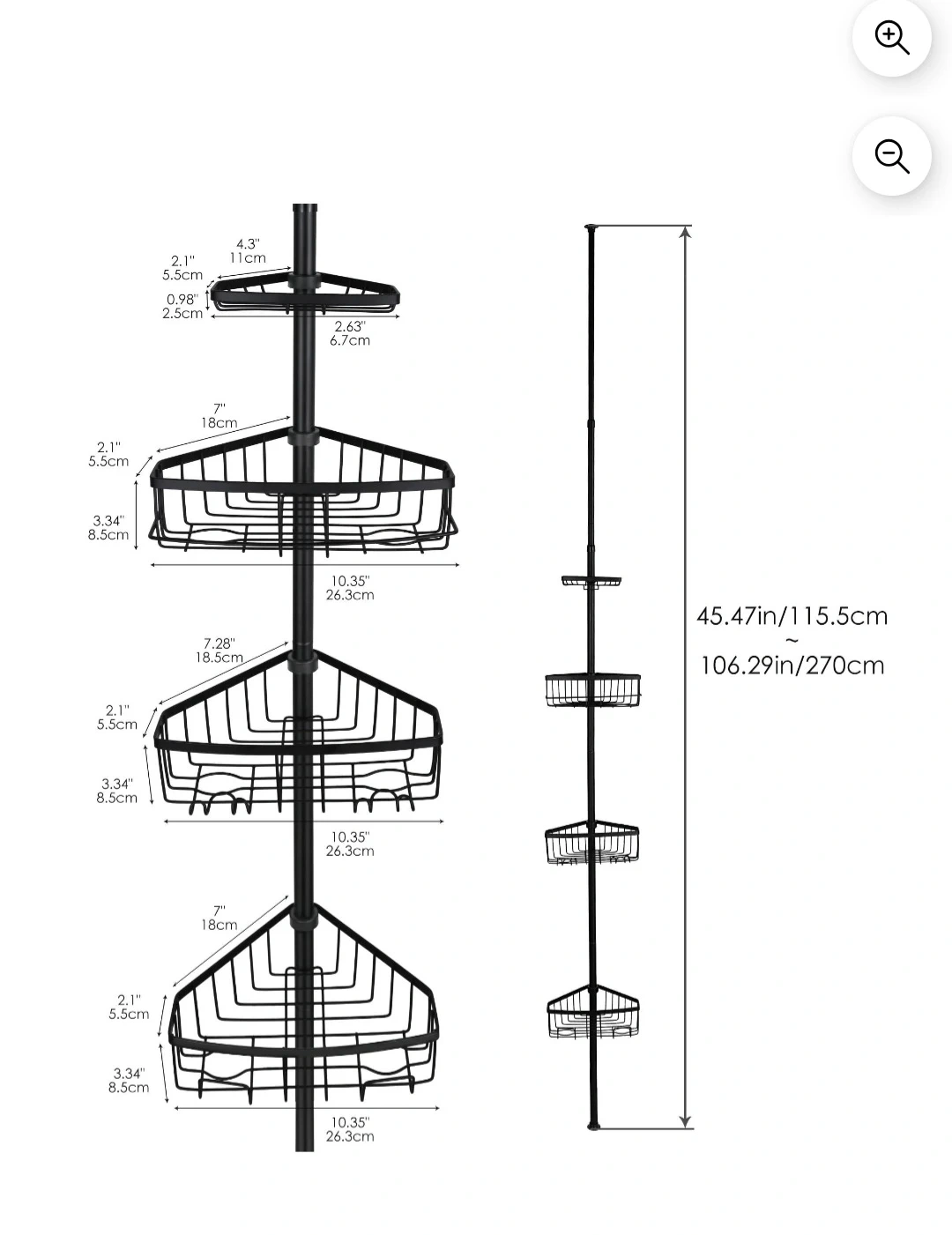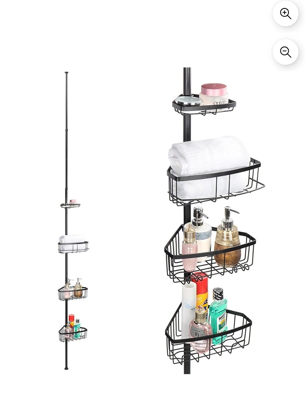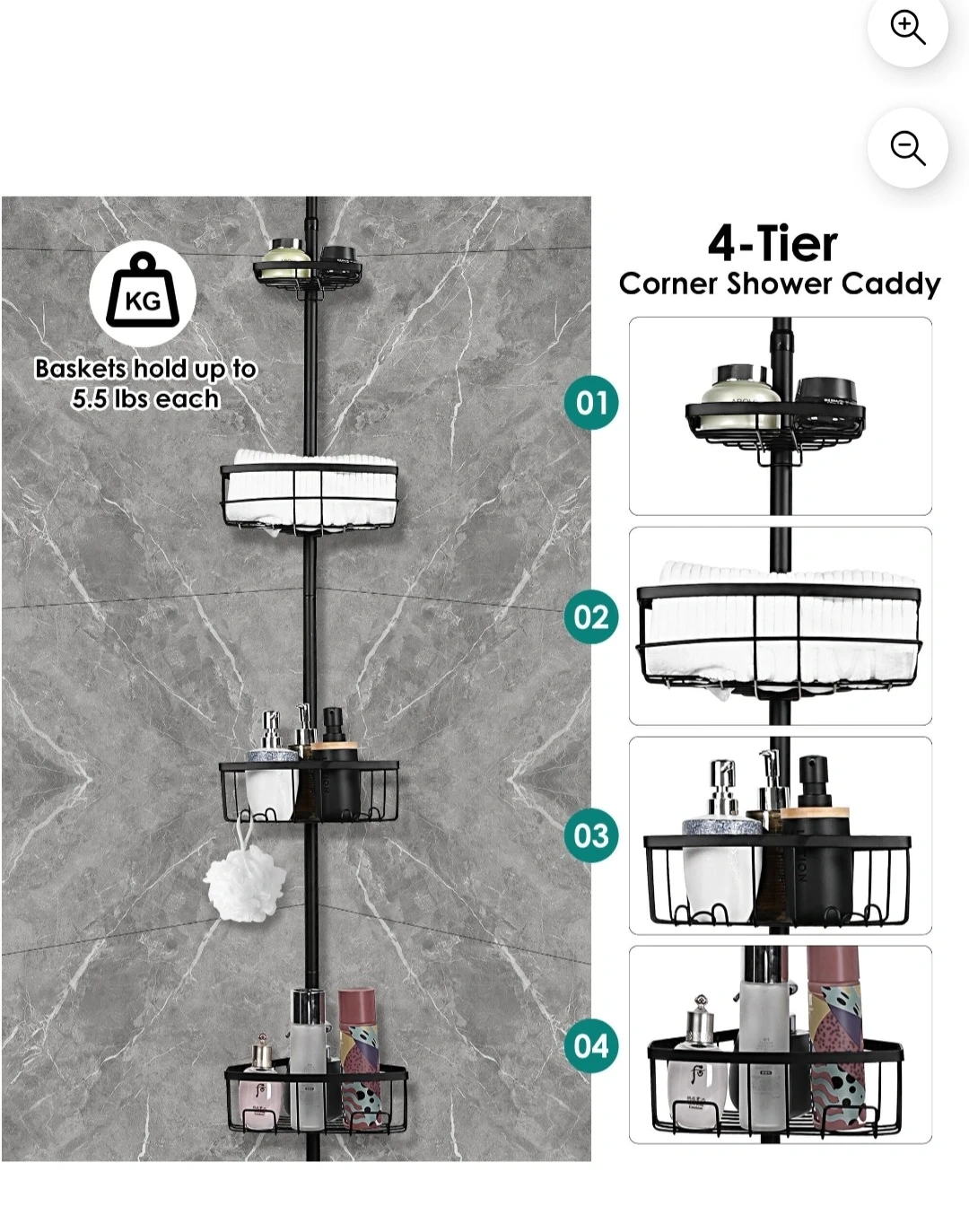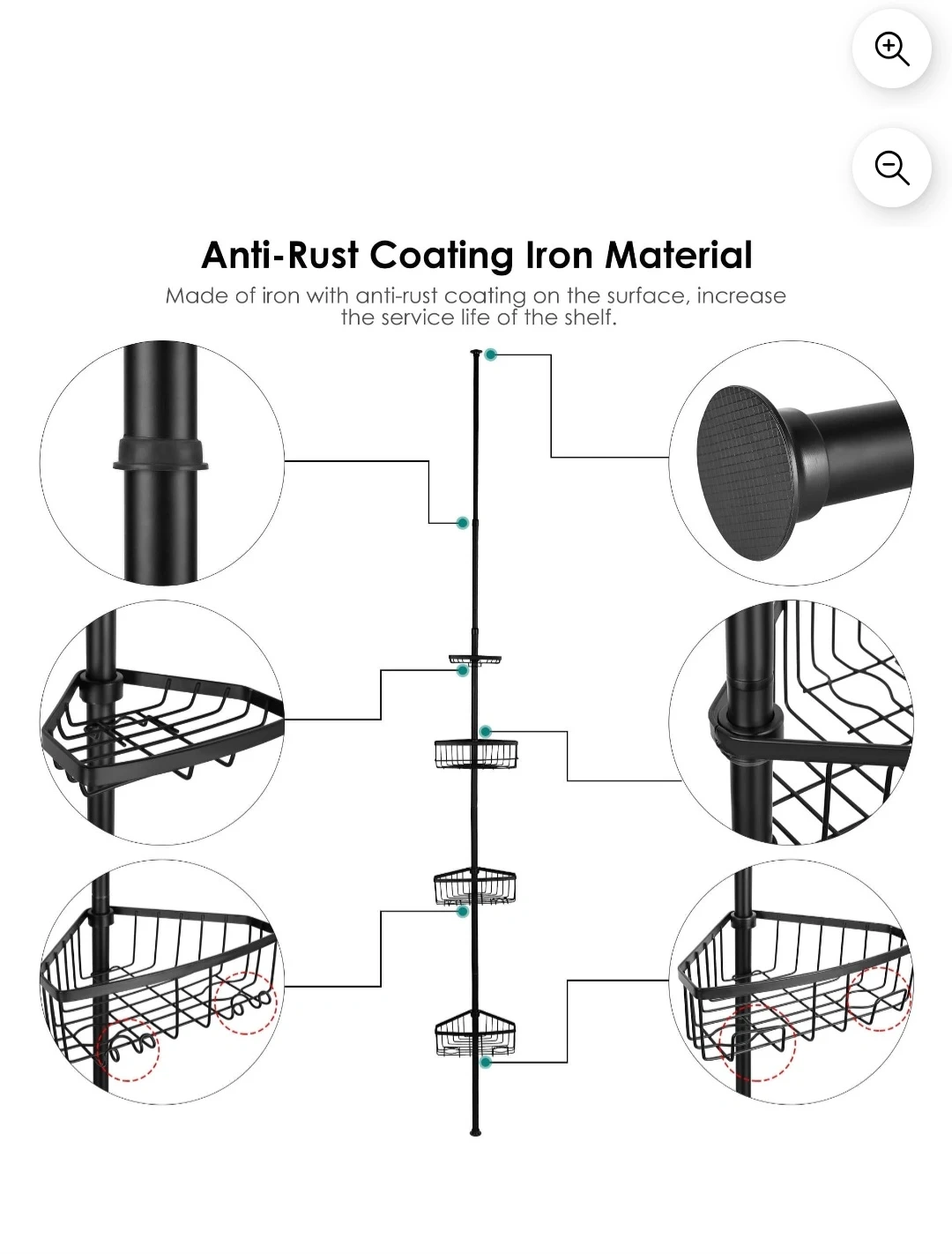 This 4-tier corner shower caddy is perfect for organizing your bathroom essentials! It's made of anti-rust coated iron material, increasing the shelf's service life. Each basket can hold up to 5.5 lbs.