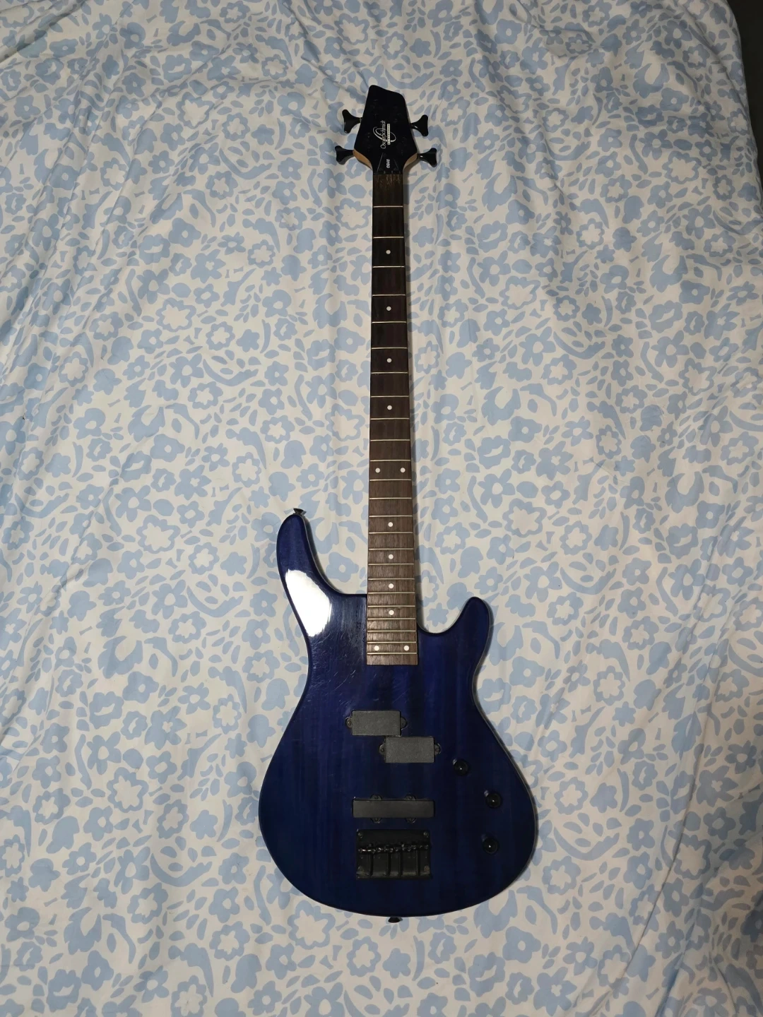 Selling a dark blue Oscar Schmidt bass guitar (by Washburn).