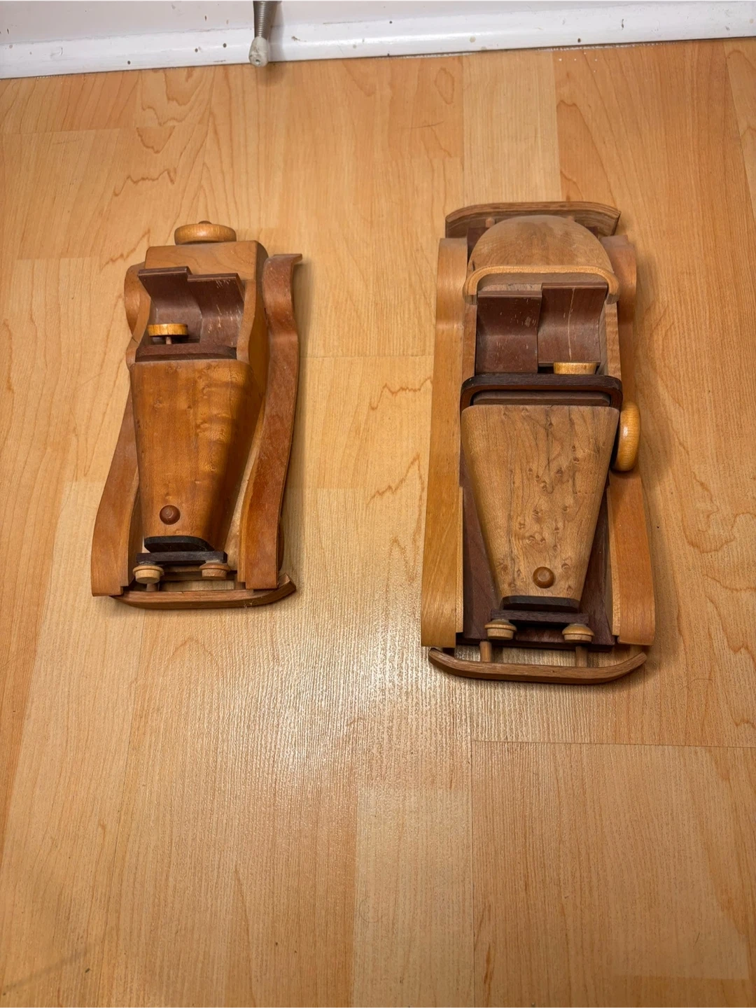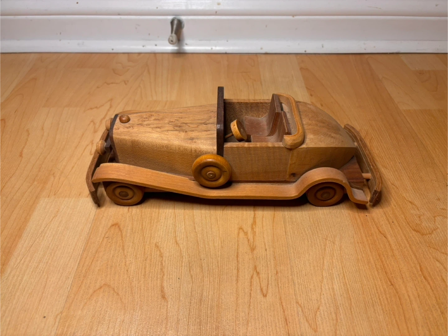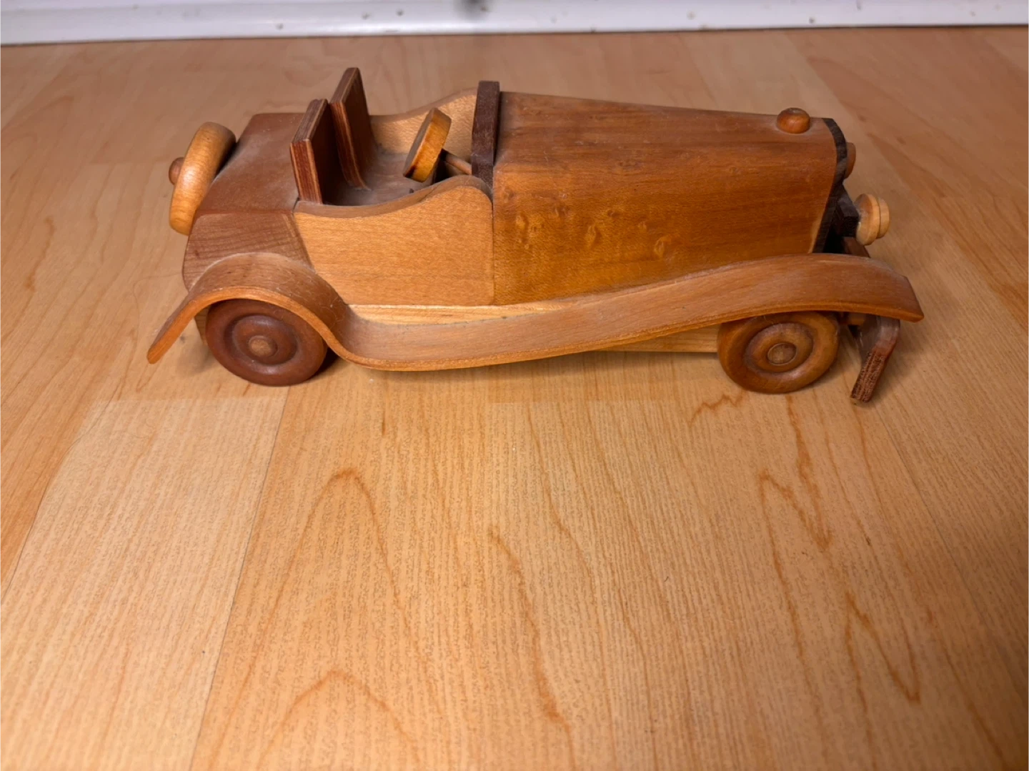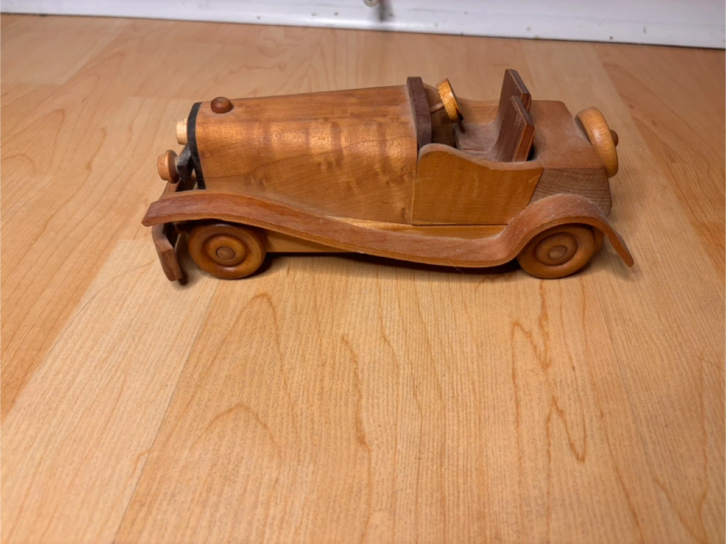 Beautiful hand-crafted wooden model cars inspired by classic early 20th-century automobiles. Made from solid hardwood with layered wood detailing, smooth curved fenders, and turned wooden wheels. These are not mass-produced toys — they are artisan pieces with real weight and craftsmanship.