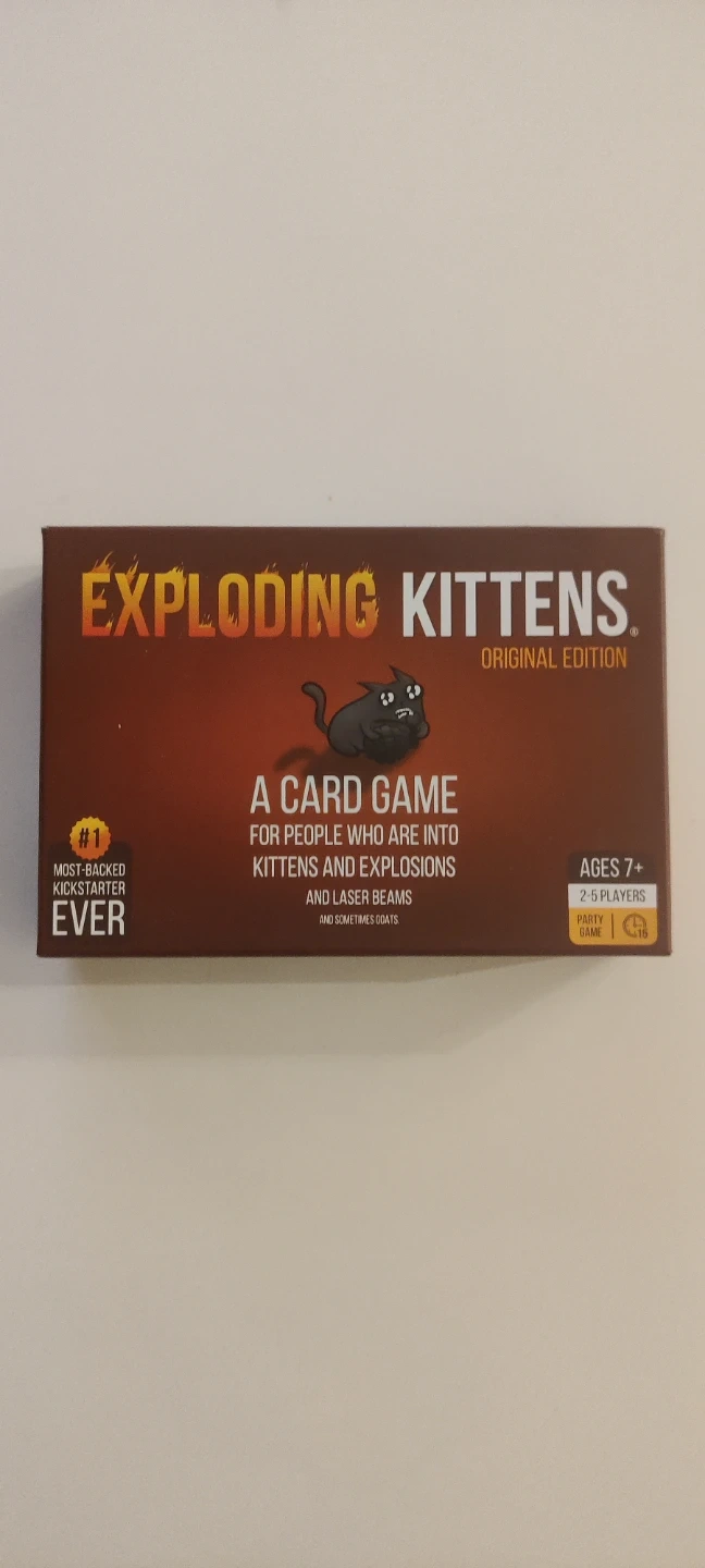 Selling a brand new Exploding Kittens Original Edition card game! It's the most-backed Kickstarter ever, and great for ages 7+. It's a party game for 2-5 players, perfect for people who are into kittens, explosions, laser beams, and sometimes goats! The box is included