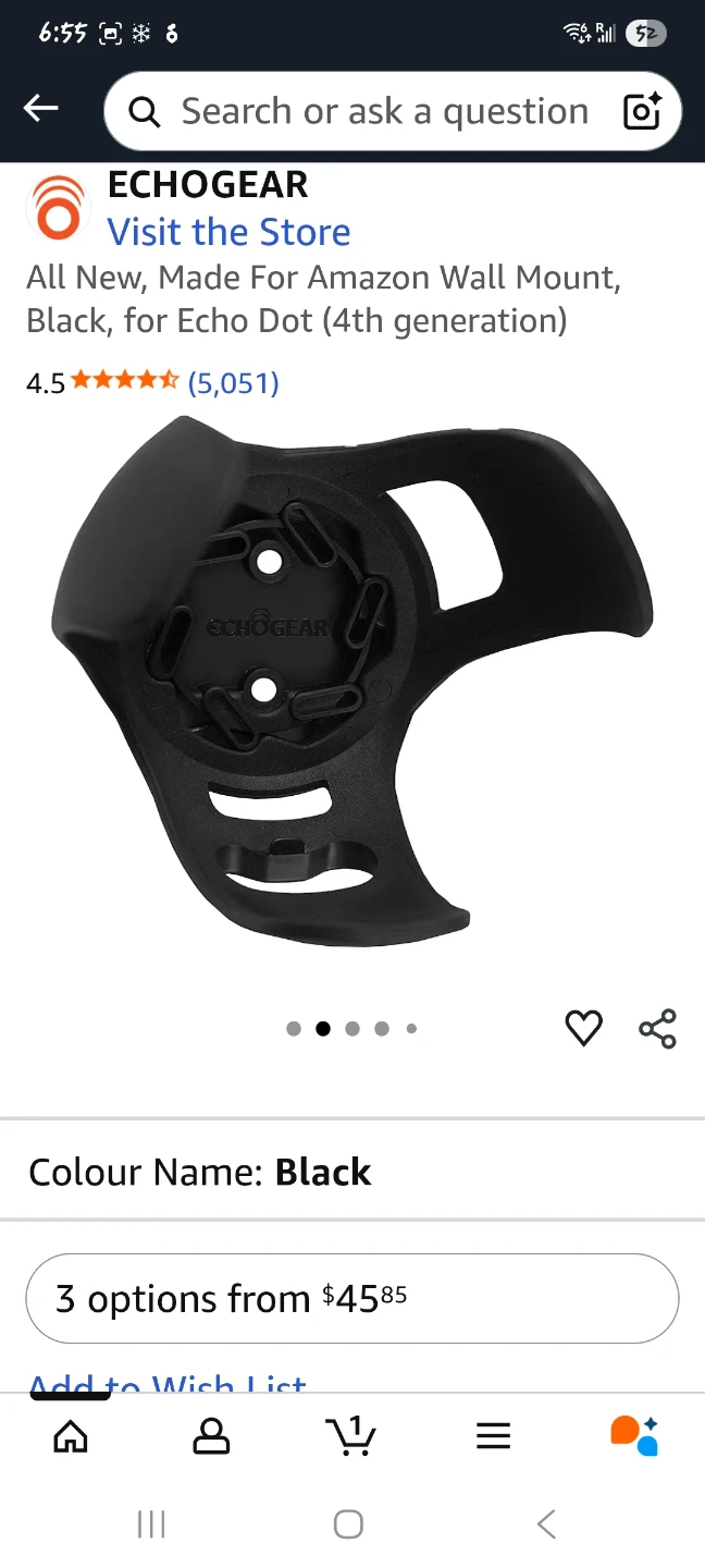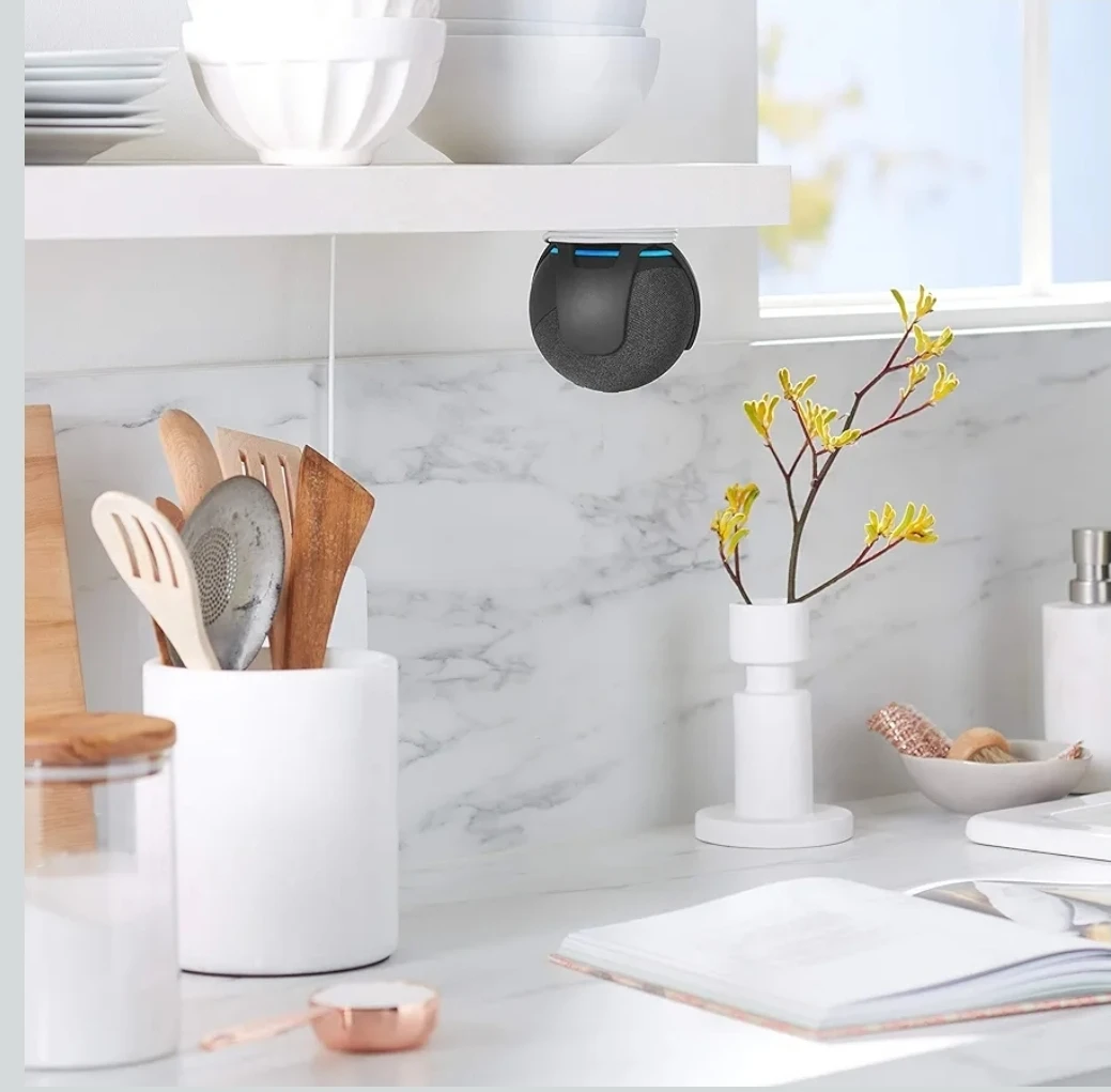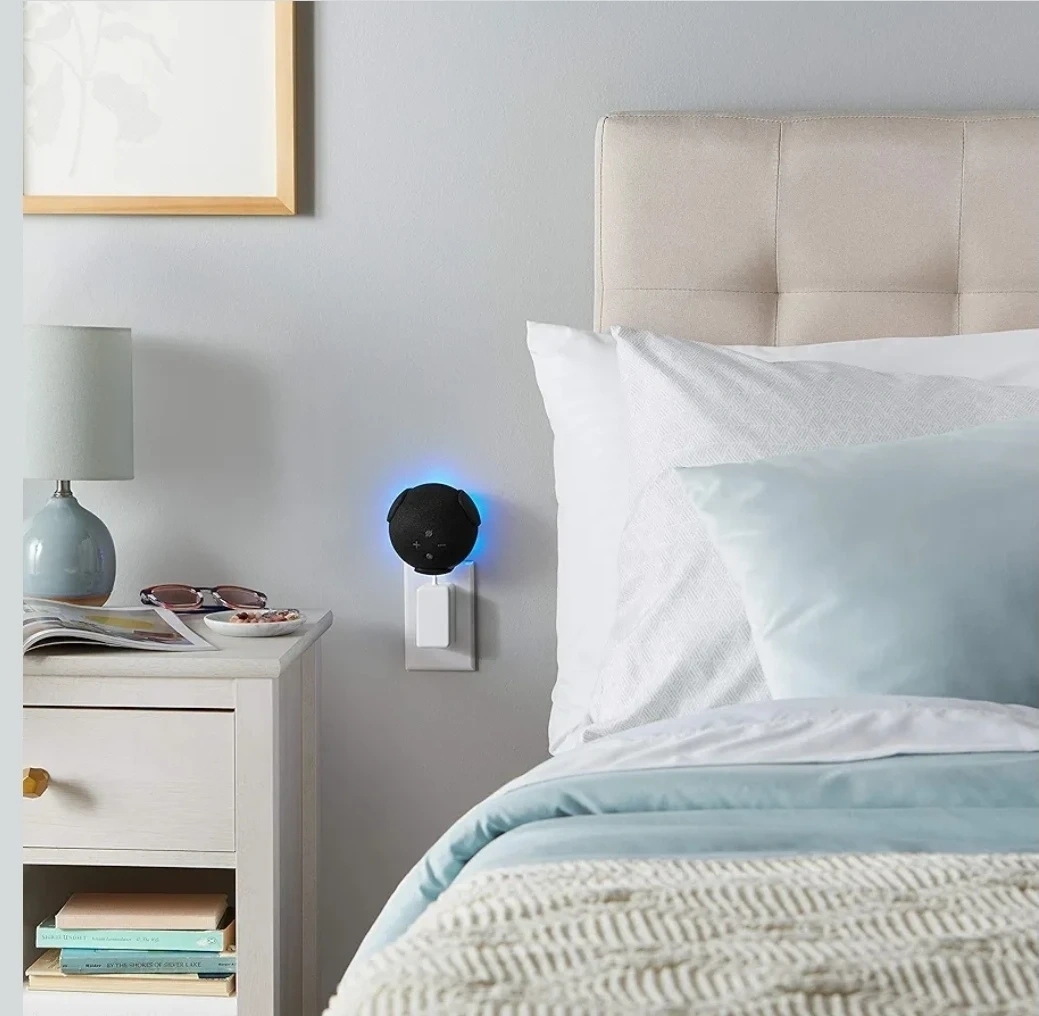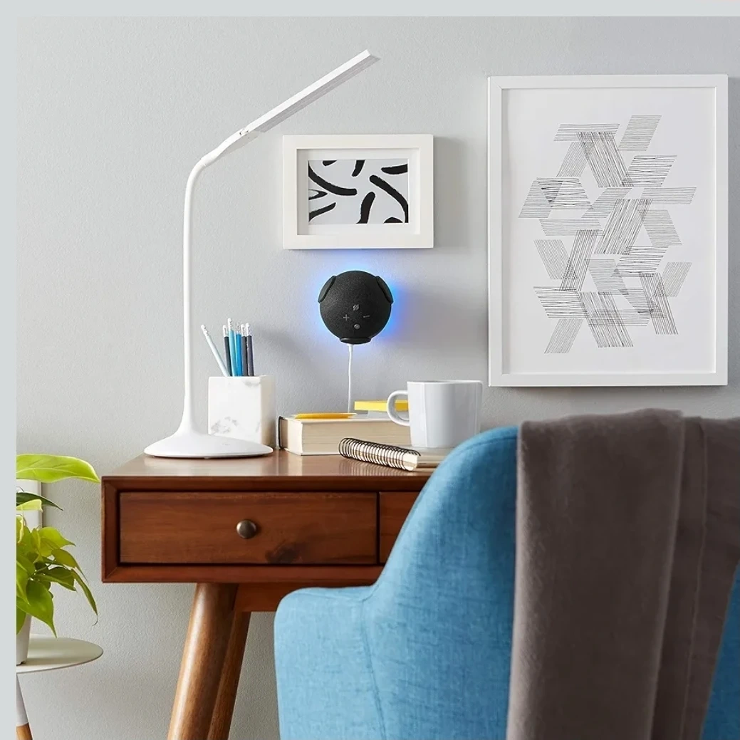 ECHOGEAR wall mount designed for the 4th generation Echo Dot. It's a simple and effective way to mount your Echo Dot on the wall, keeping it out of the way and improving sound projection. The mount is black or white, blending in with most decor. It's compatible with the Amazon Echo Dot (4th Gen) speakers.