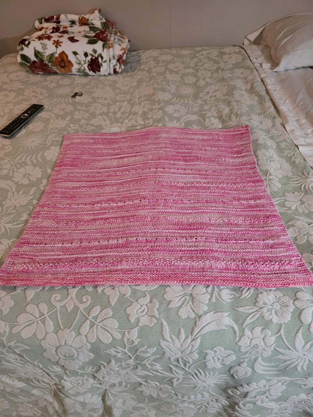 Handmade Pink Knitted Infant Blanket 23" wide by 24" long π