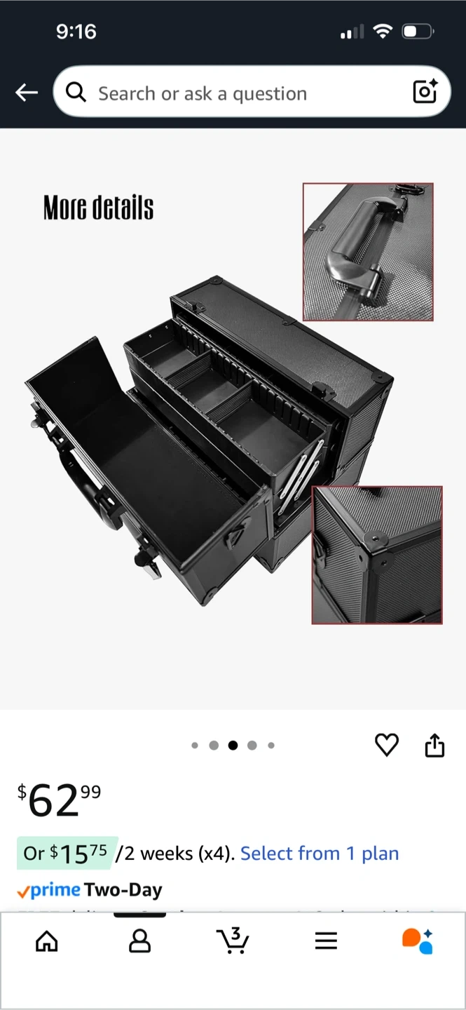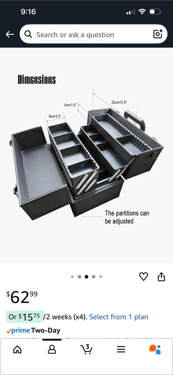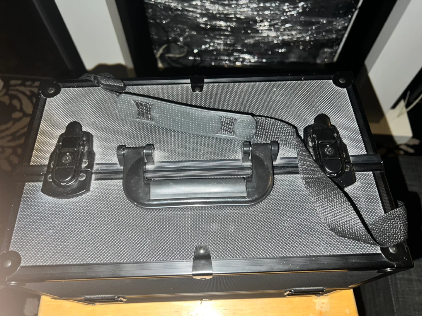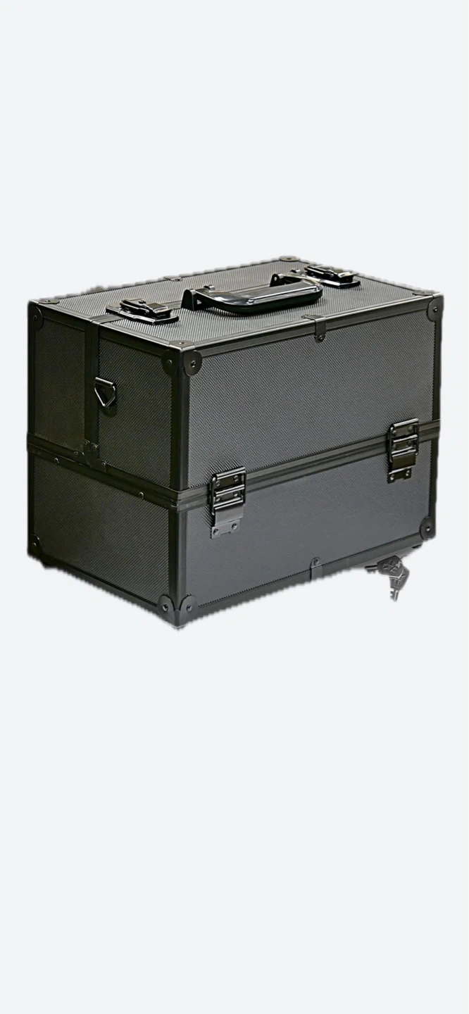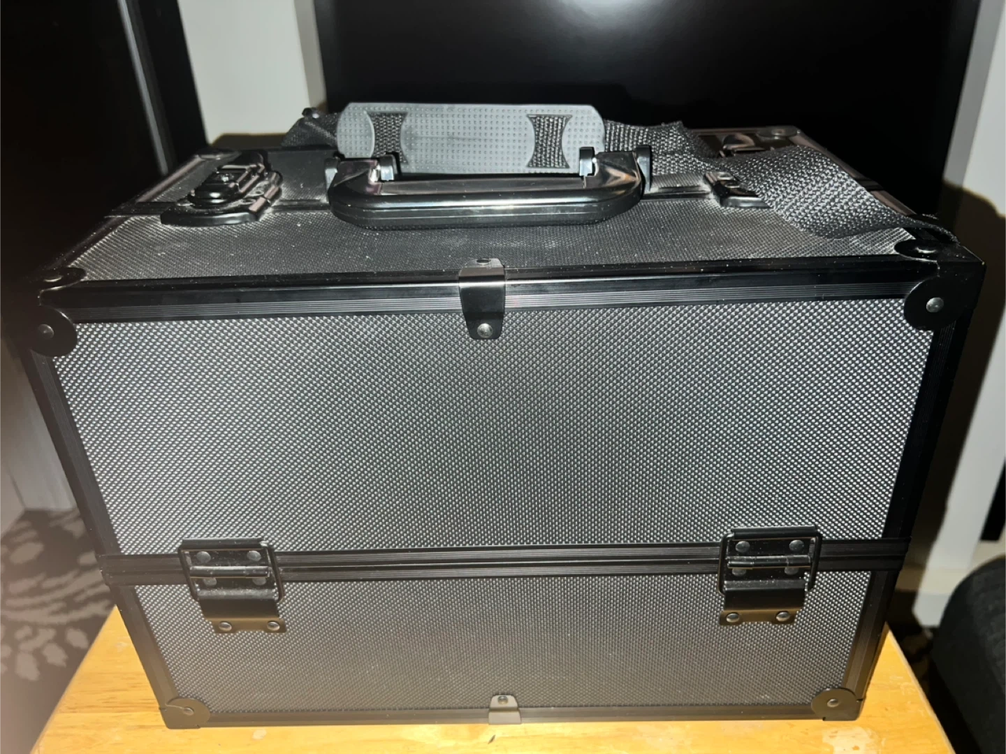 Selling a black makeup/cosmetic organizer case. It has adjustable dividers and a handle for easy carrying. Great for organizing all your beauty products! Wipeable upper organizer shelving. Selling only as I was gifted a larger one.