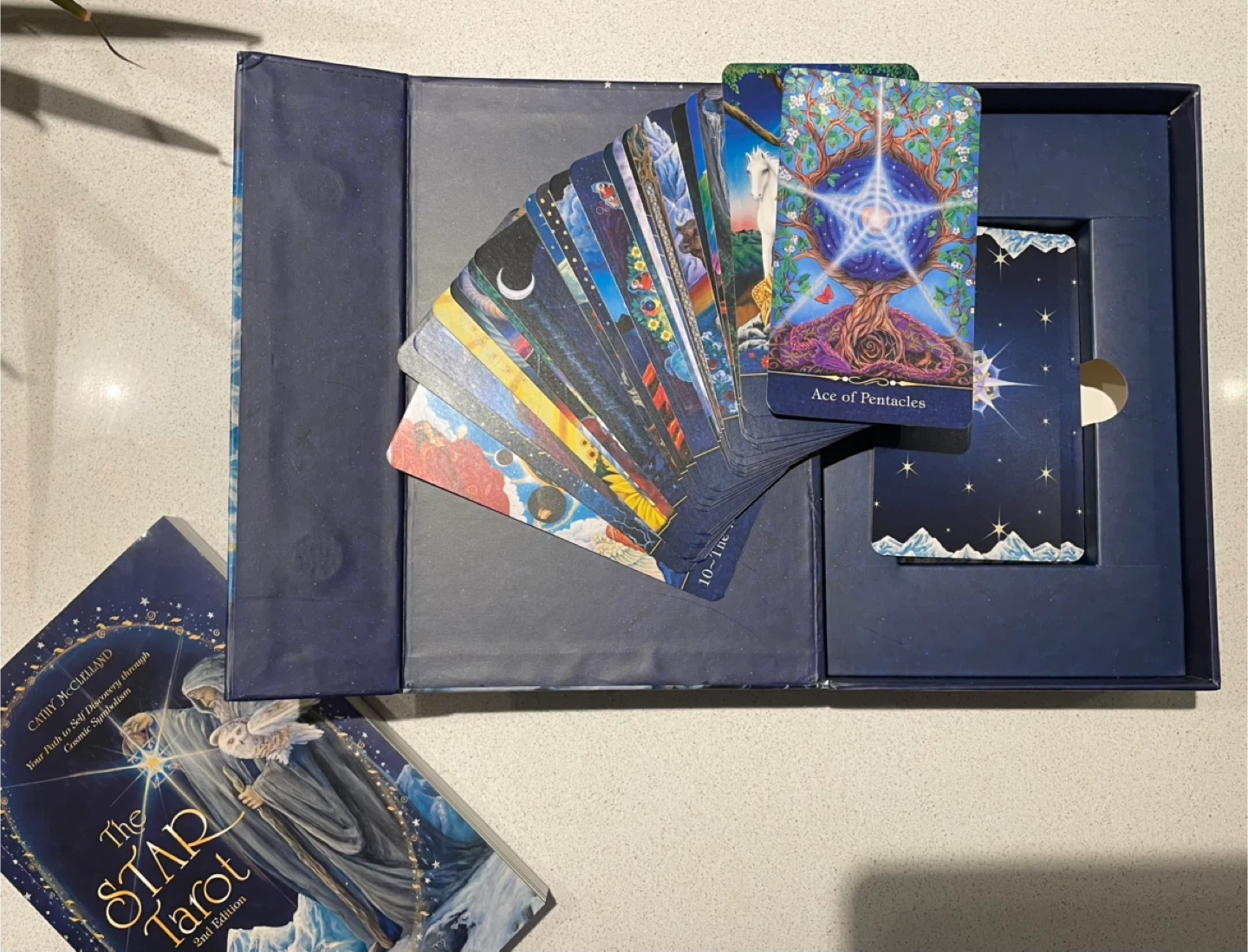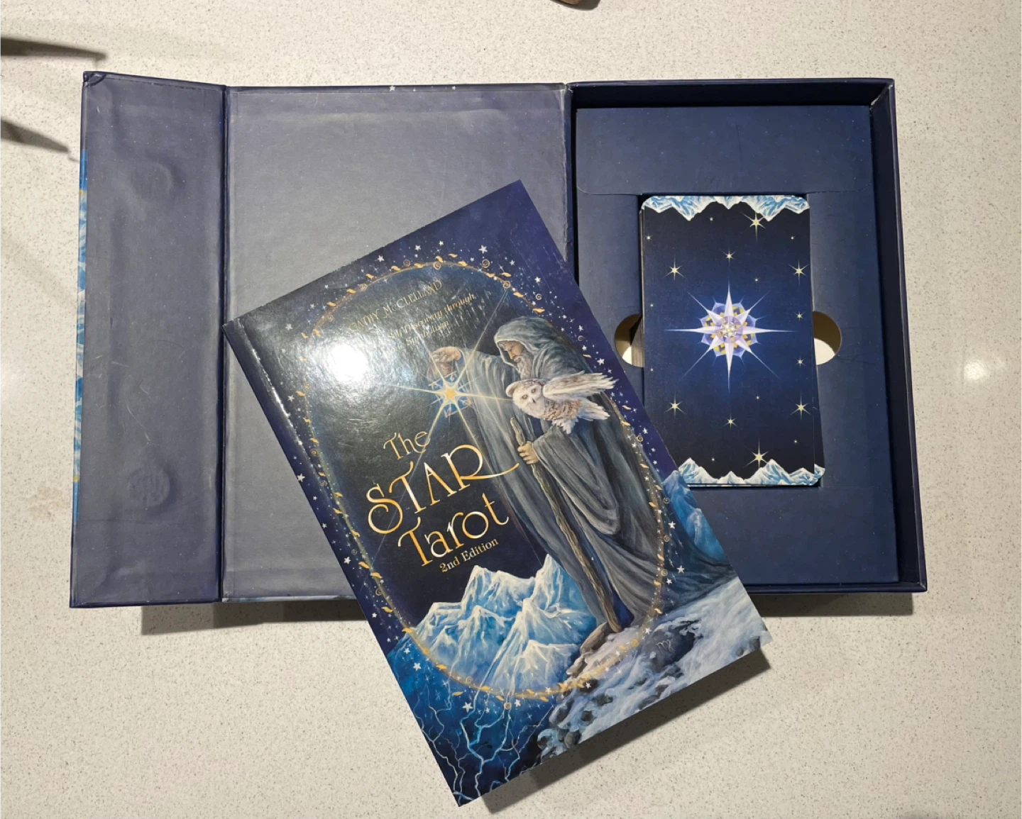 Selling The Star Tarot 2nd Edition deck by Cathy McClelland! It comes with the box, all the cards, and a book that explains the symbolism and meaning behind each card.