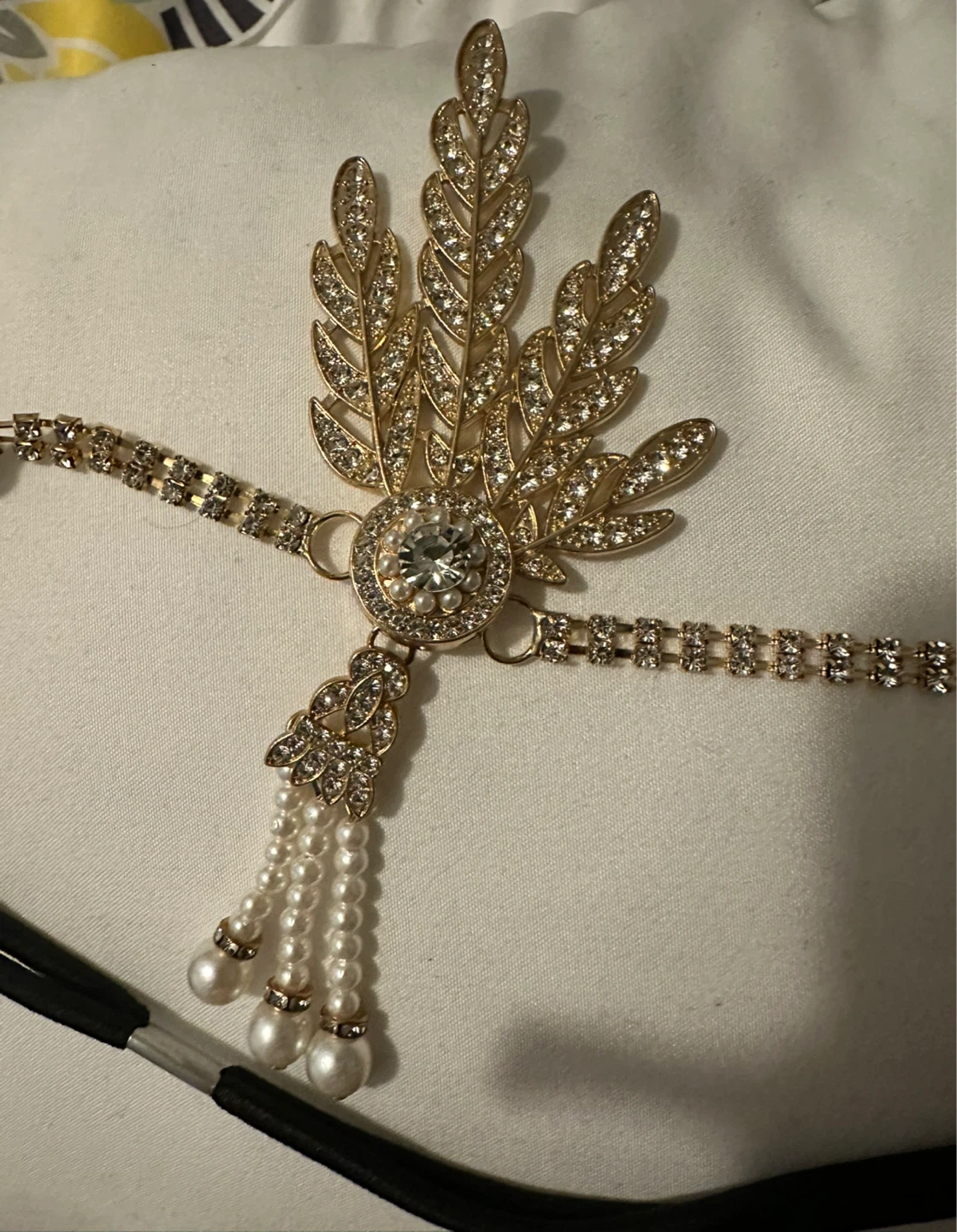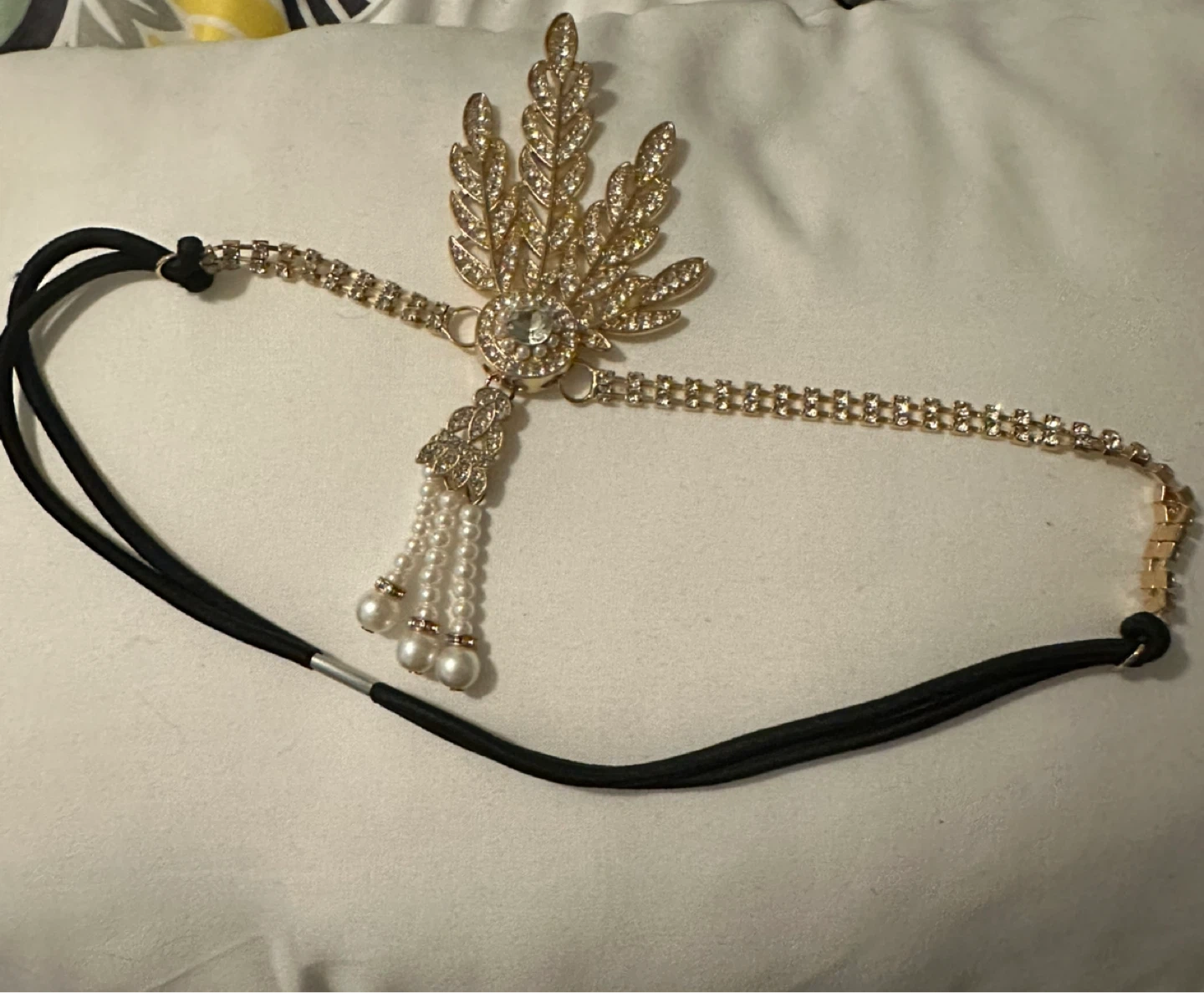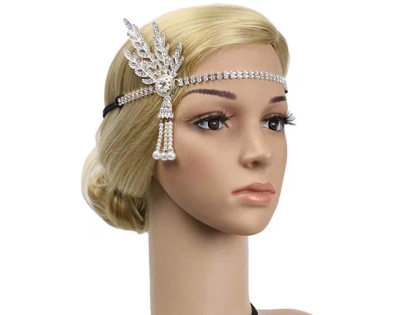 Add a touch of vintage glamour with this lovely flapper headband! Perfect for a Great Gatsby themed party or any special occasion. Features faux pearls and sparkling rhinestones.