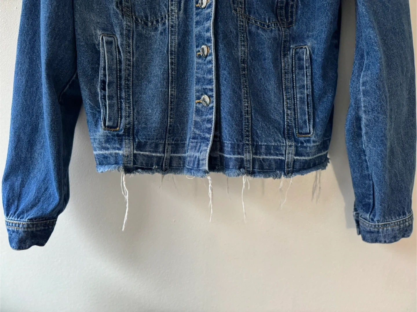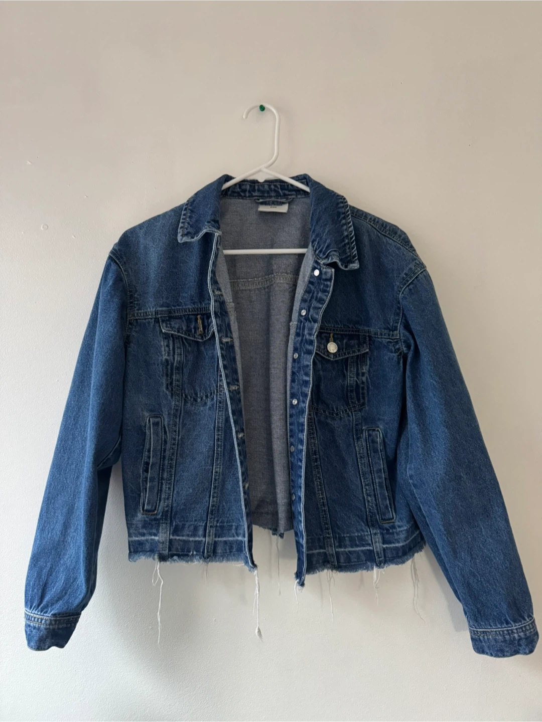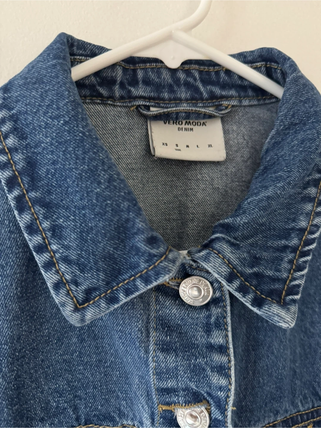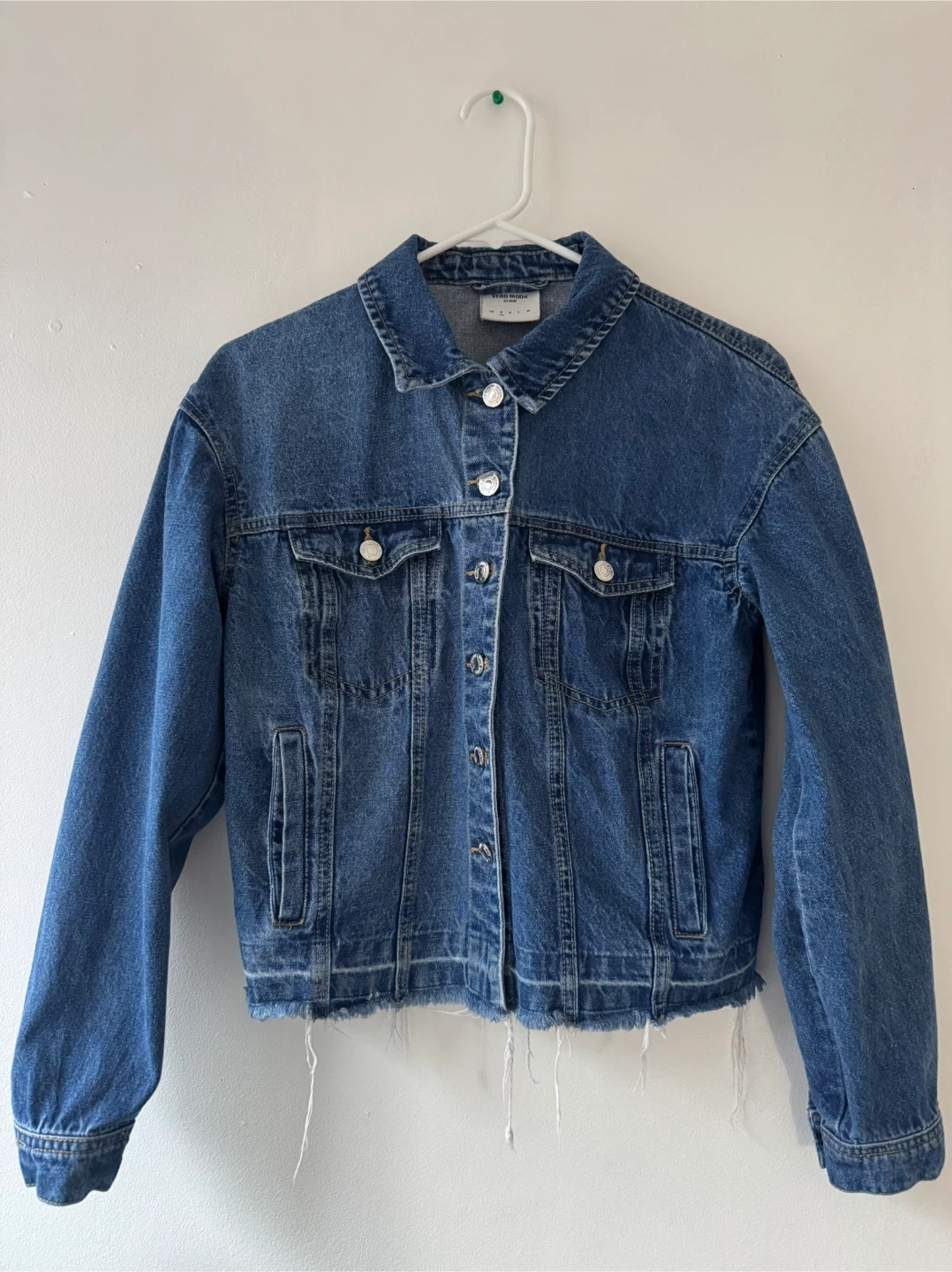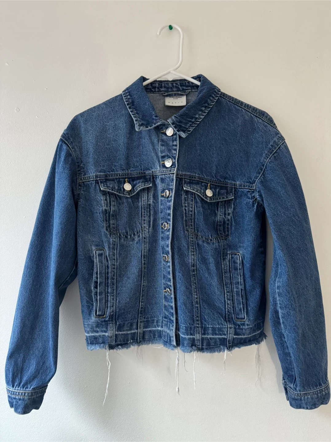 Selling this Vero Moda cropped denim jacket in size small. It's a classic blue denim colour, a piece perfect for layering!