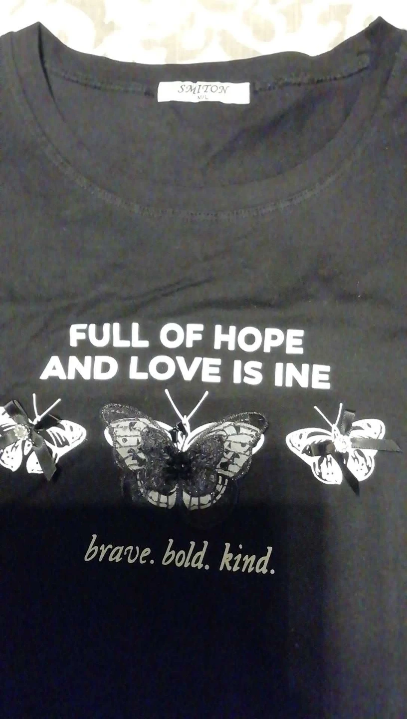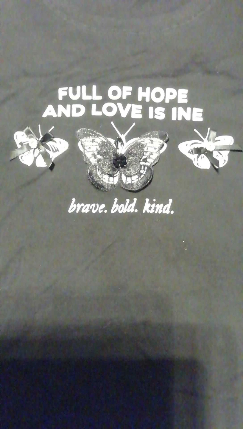 Selling a cute black graphic tee from S'MITION! It has a really sweet design with butterflies and the words "FULL OF HOPE AND LOVE IS INE" and "brave. bold. kind."