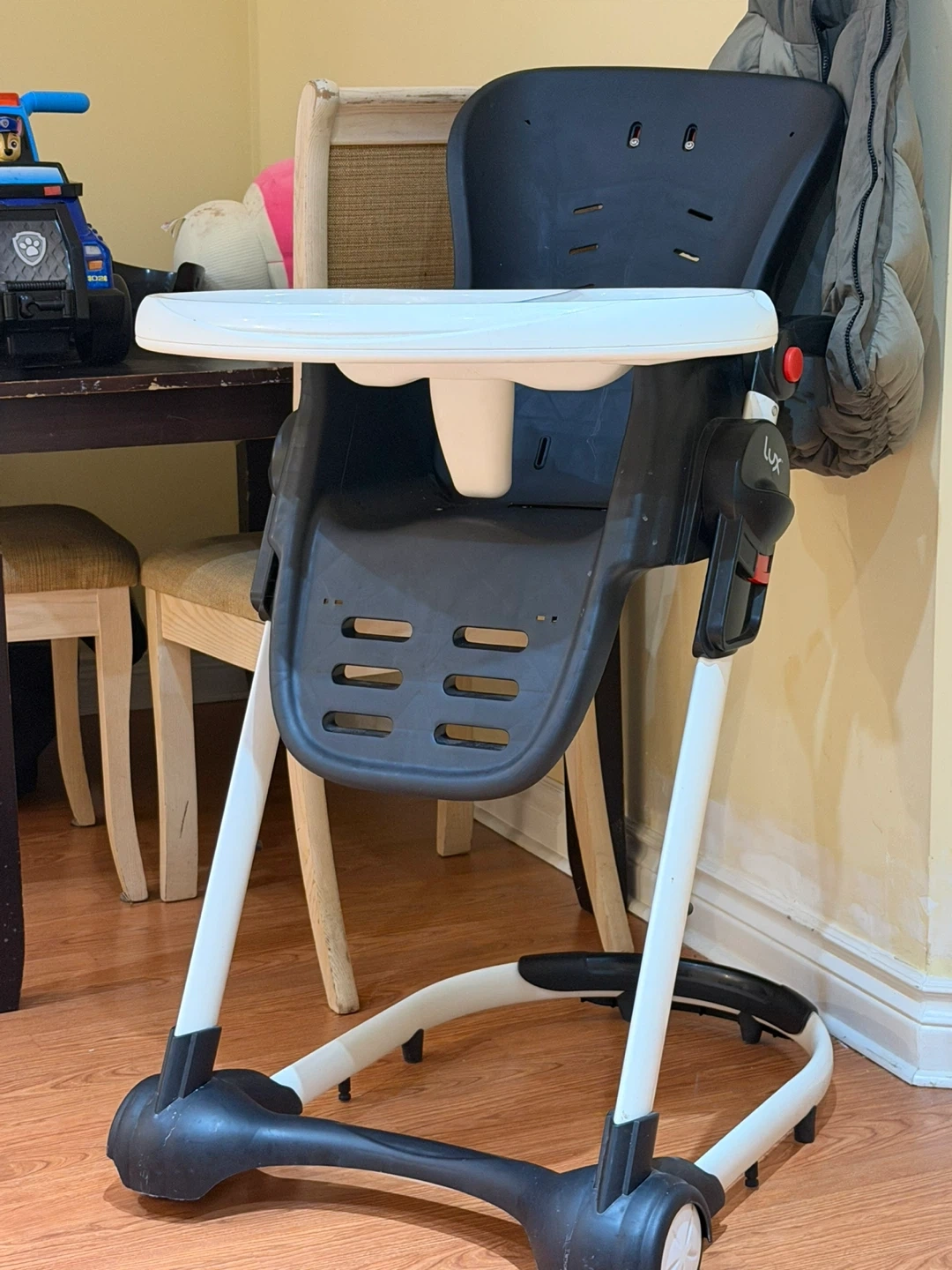 All Selling a Lux high chair in black and white. It's in good condition and ready for a new home! Perfect for meal times with your little one.