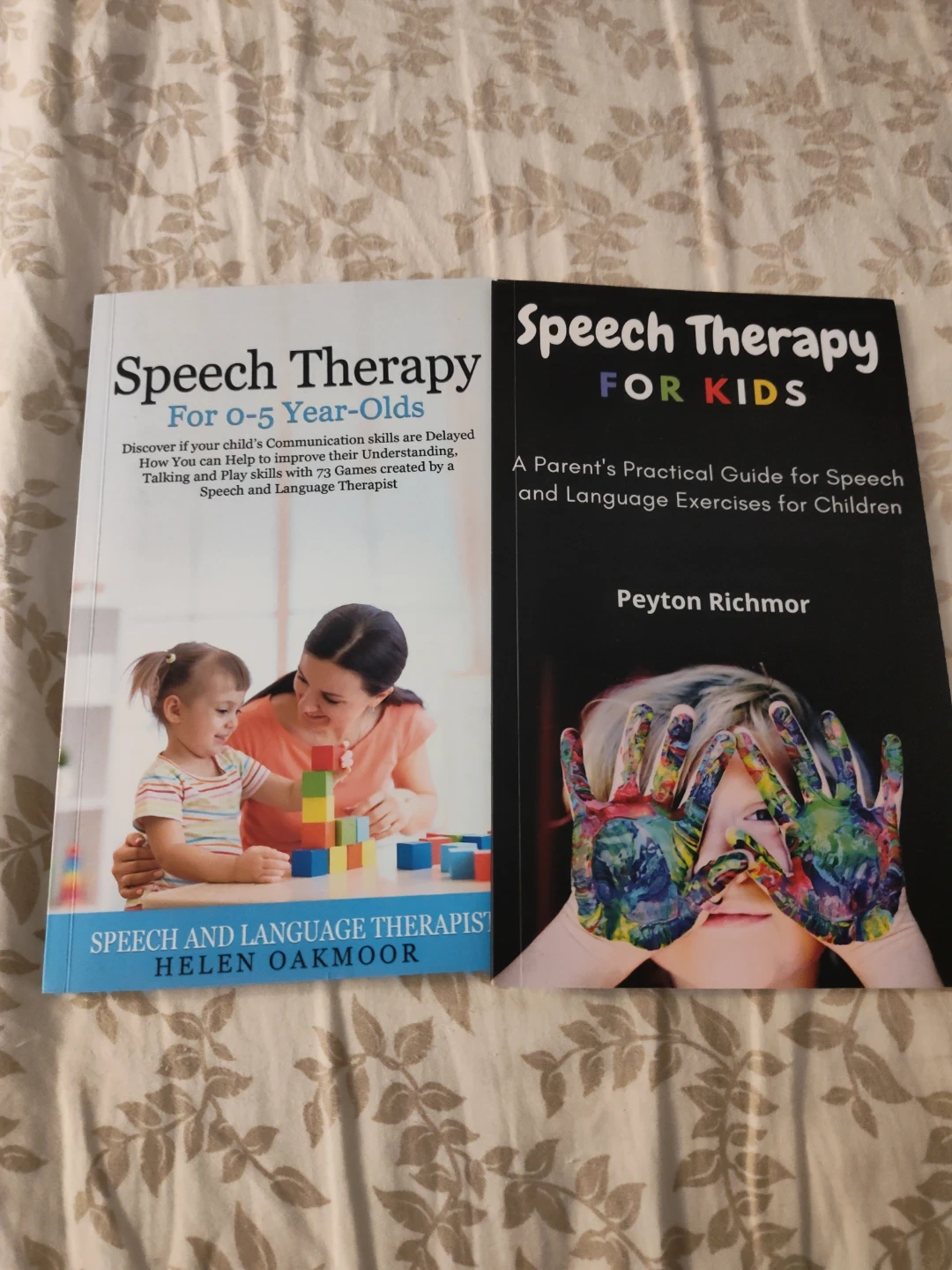 I have two speech therapy books for sale. One is "Speech Therapy for 0-5 Year-Olds" by Helen Oakmoor, and the other is "Speech Therapy for Kids" by Peyton Richmor. Both are practical guides for speech and language exercises for children