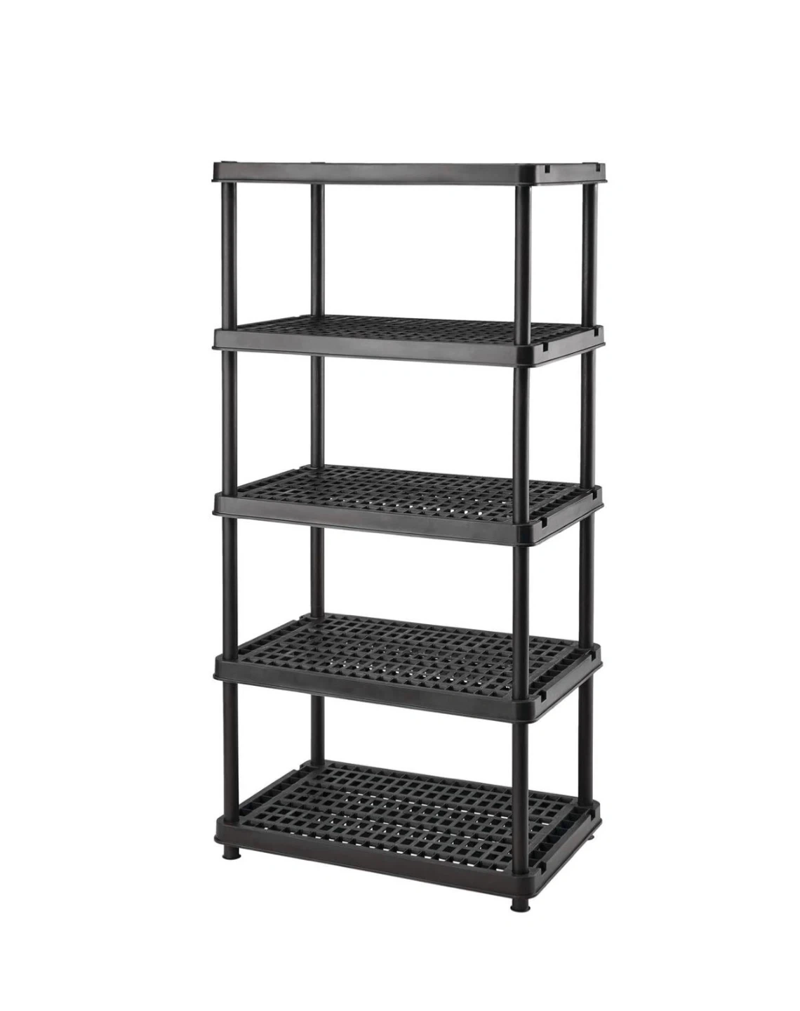Selling a black 5-tier plastic storage shelf in very good condition. Strong, durable, and lightweight design with ventilated shelves, perfect for organizing items in multiple spaces. Easy to assemble and easy to clean.