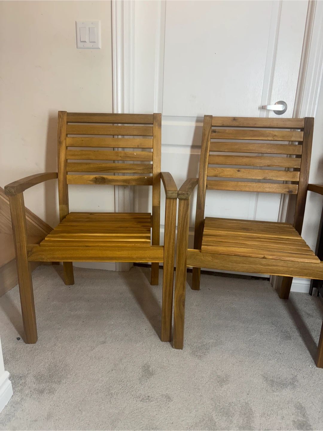1 / 81 / 8Buy & SellSet of Two Wooden Outdoor ChairsSet of Two Wooden Outdoor Chairs$70Selling a set of two wooden outdoor chairs. would be perfect for your patio or garden! Available for pick up and deliveryConditionNewWHERE TO MEETDelpark Homes CentreView MapSELLERverifiedYomaNorth Oshawa58045 reviews0 chats·0 favorites·16 viewsSEND CHAT TO SELLERHi Yoma! I’m interested in your listing.Hi Yoma! I’m interested in your listing.Get the Karrot app to chatSign In to chat