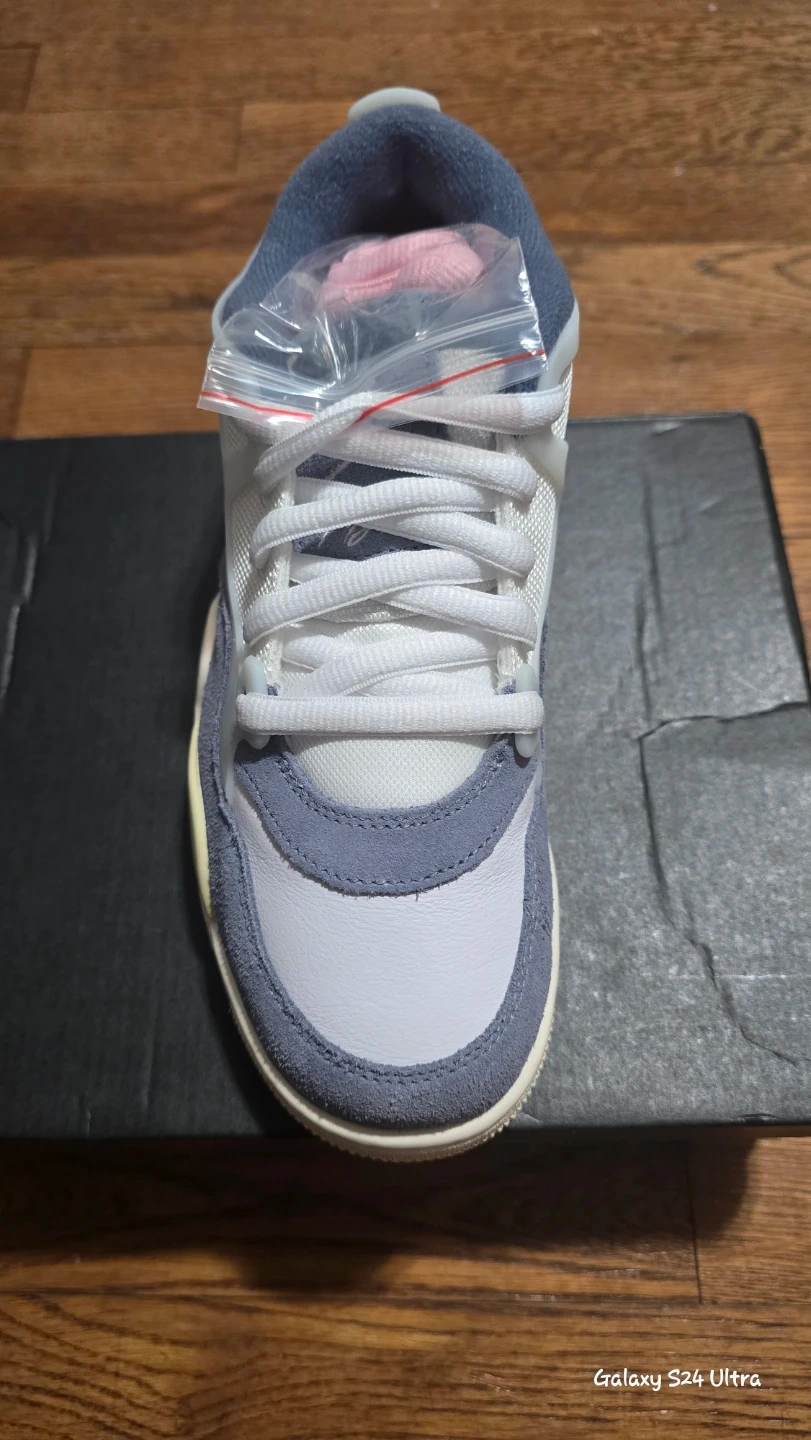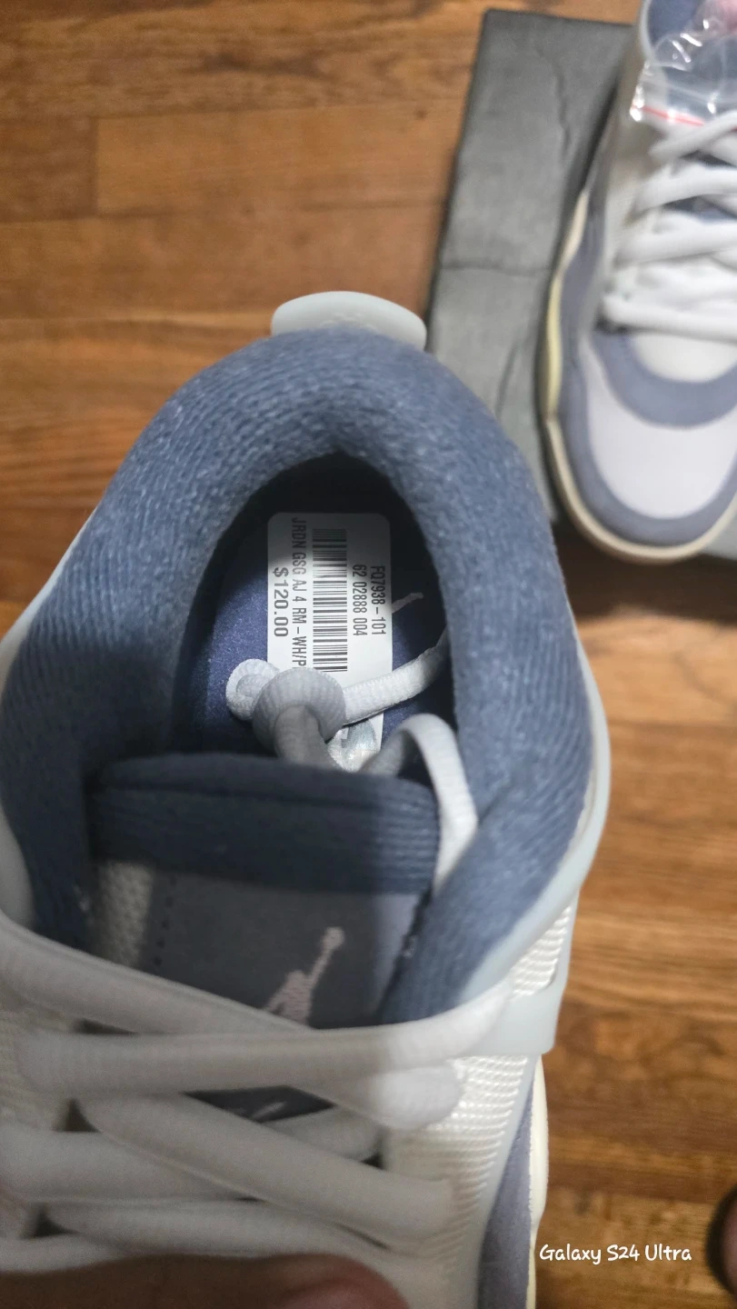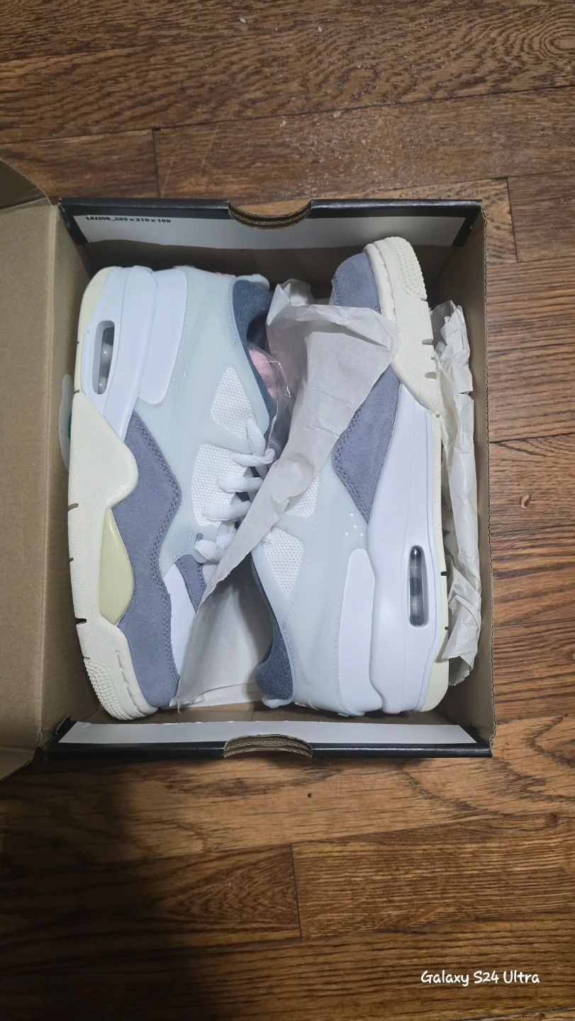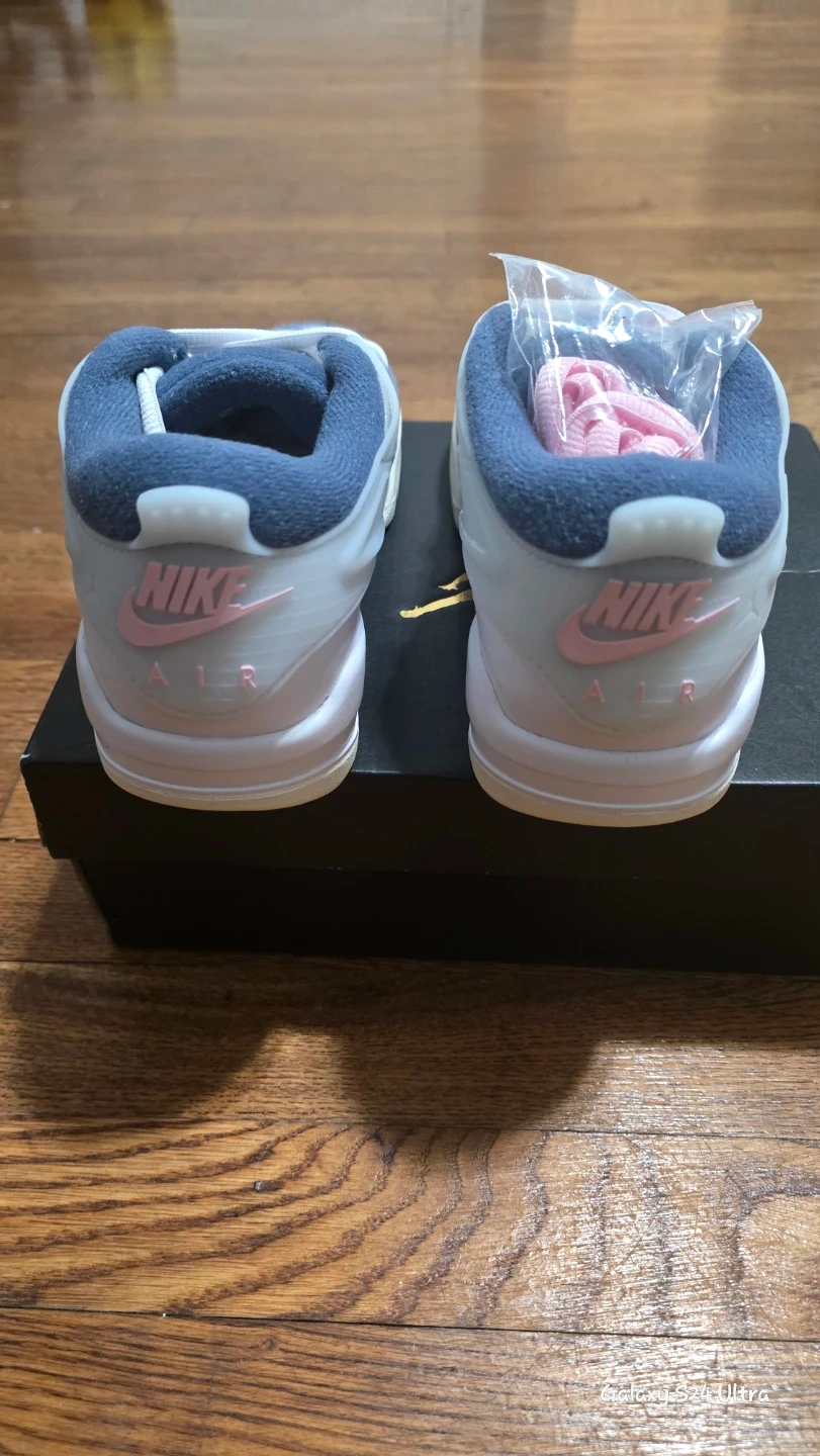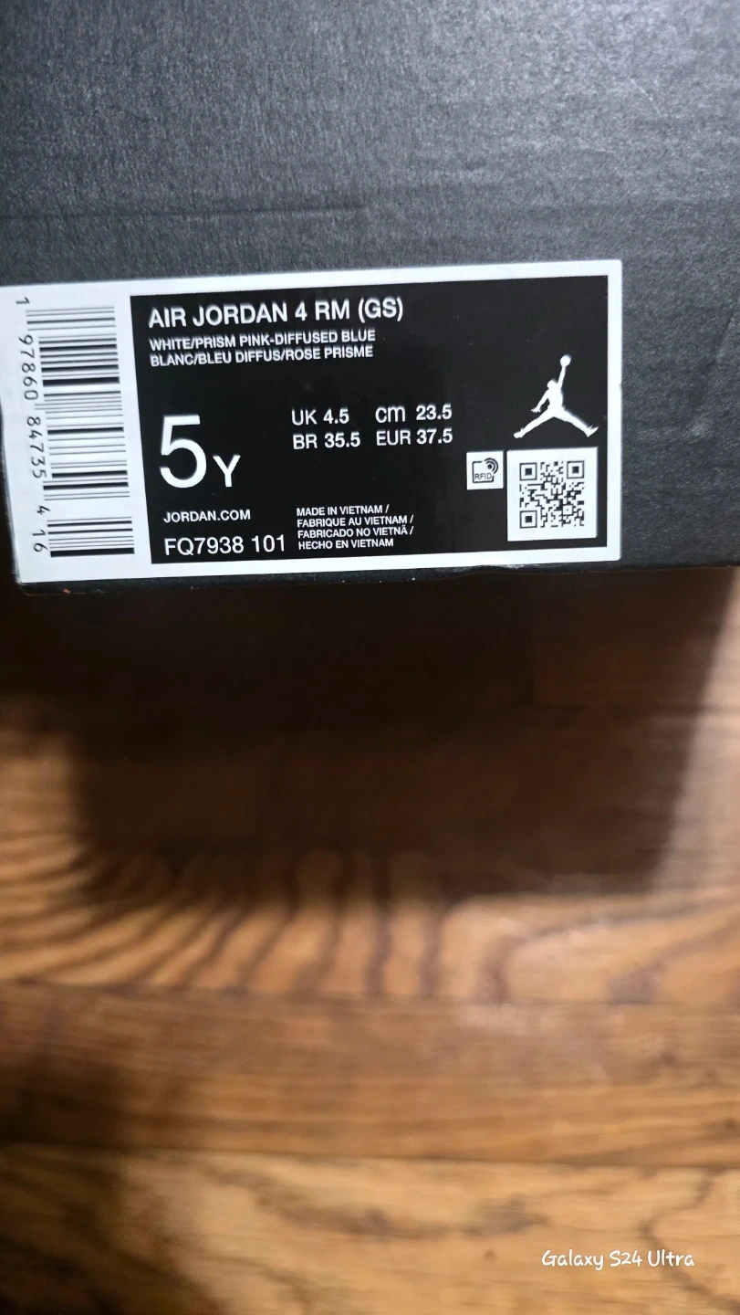 Selling a pair of Air Jordan 4 RM (GS) in size 5Y. The colorway is White/Prism Pink-Diffused Blue. Comes with the original box!