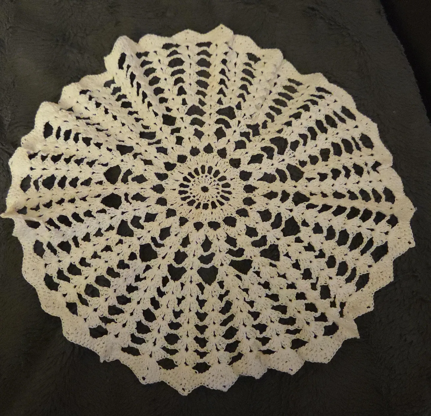 Selling a beautiful handmade white crochet doily. It's in great condition and would look lovely on a table or shelf. The intricate design adds a touch of vintage charm to any space!