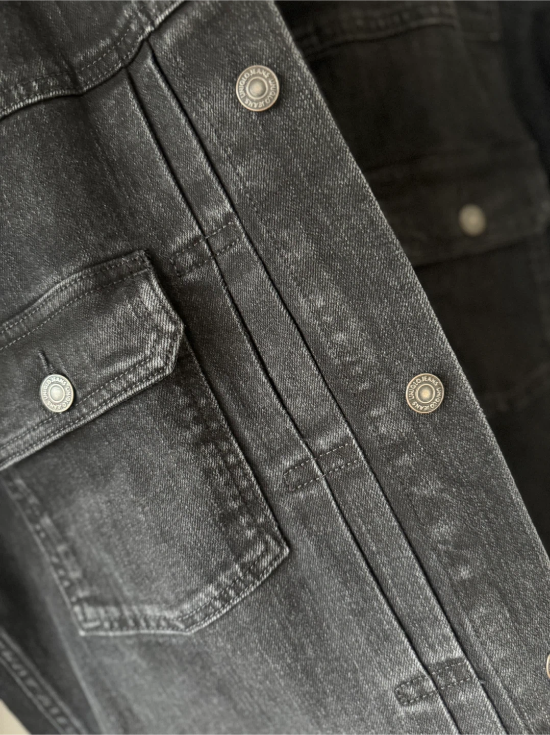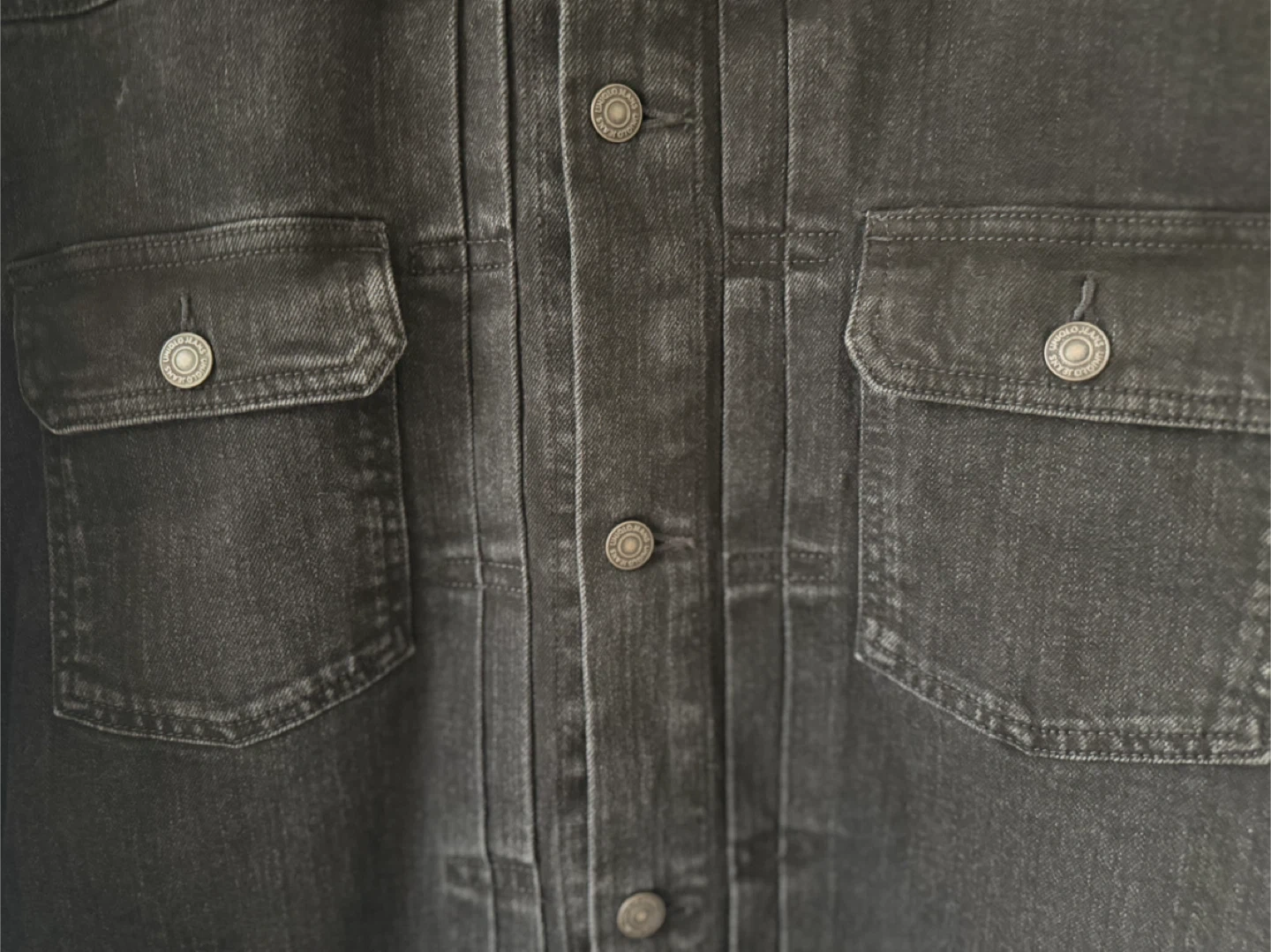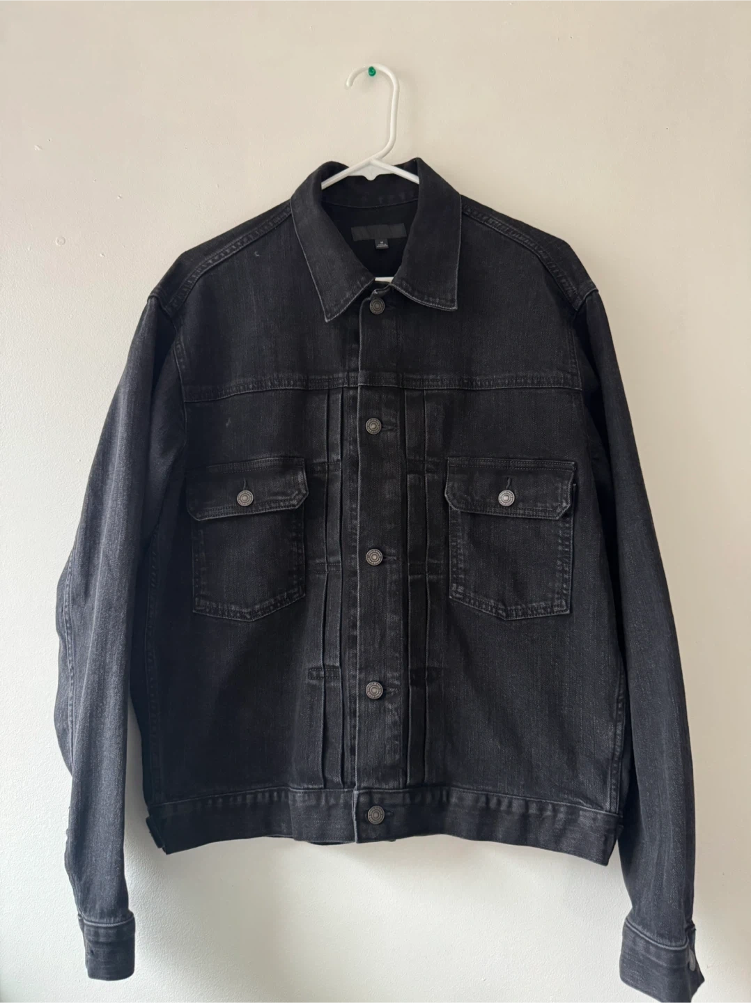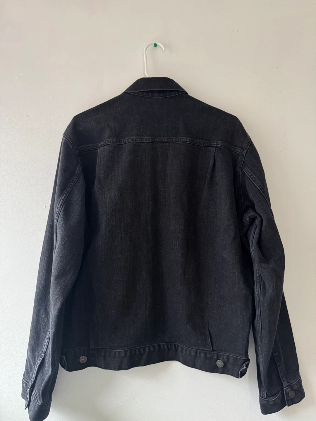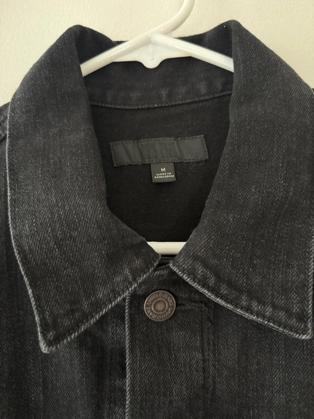 Selling this Uniqlo denim jacket in black, size medium. It's in great condition and ready for a new wardrobe!