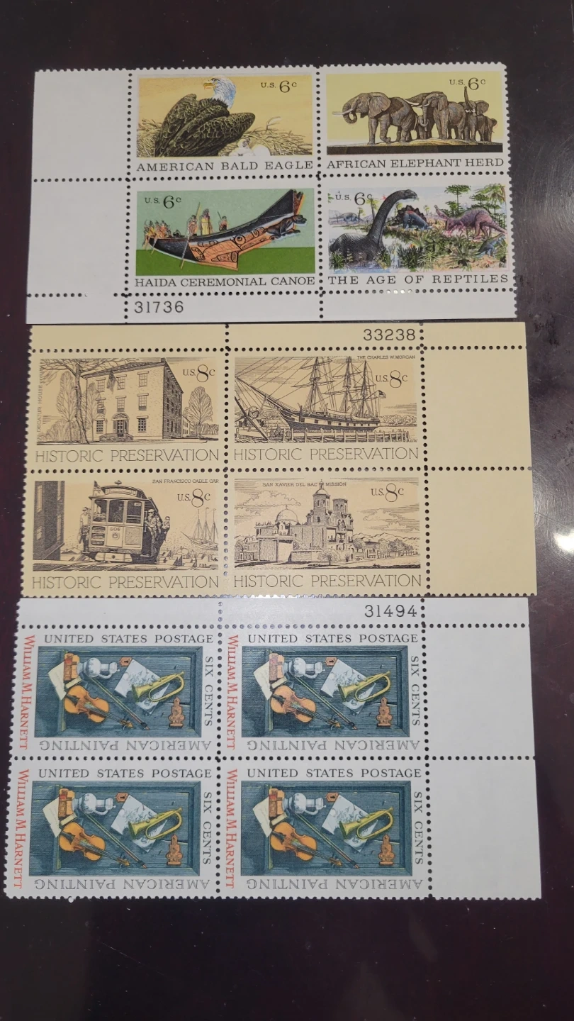 Selling a collection of vintage United States postage stamps. These stamps feature various designs, including American Bald Eagles, African Elephant Herds, Haida Ceremonial Canoes, and more. A great addition for any stamp collector!