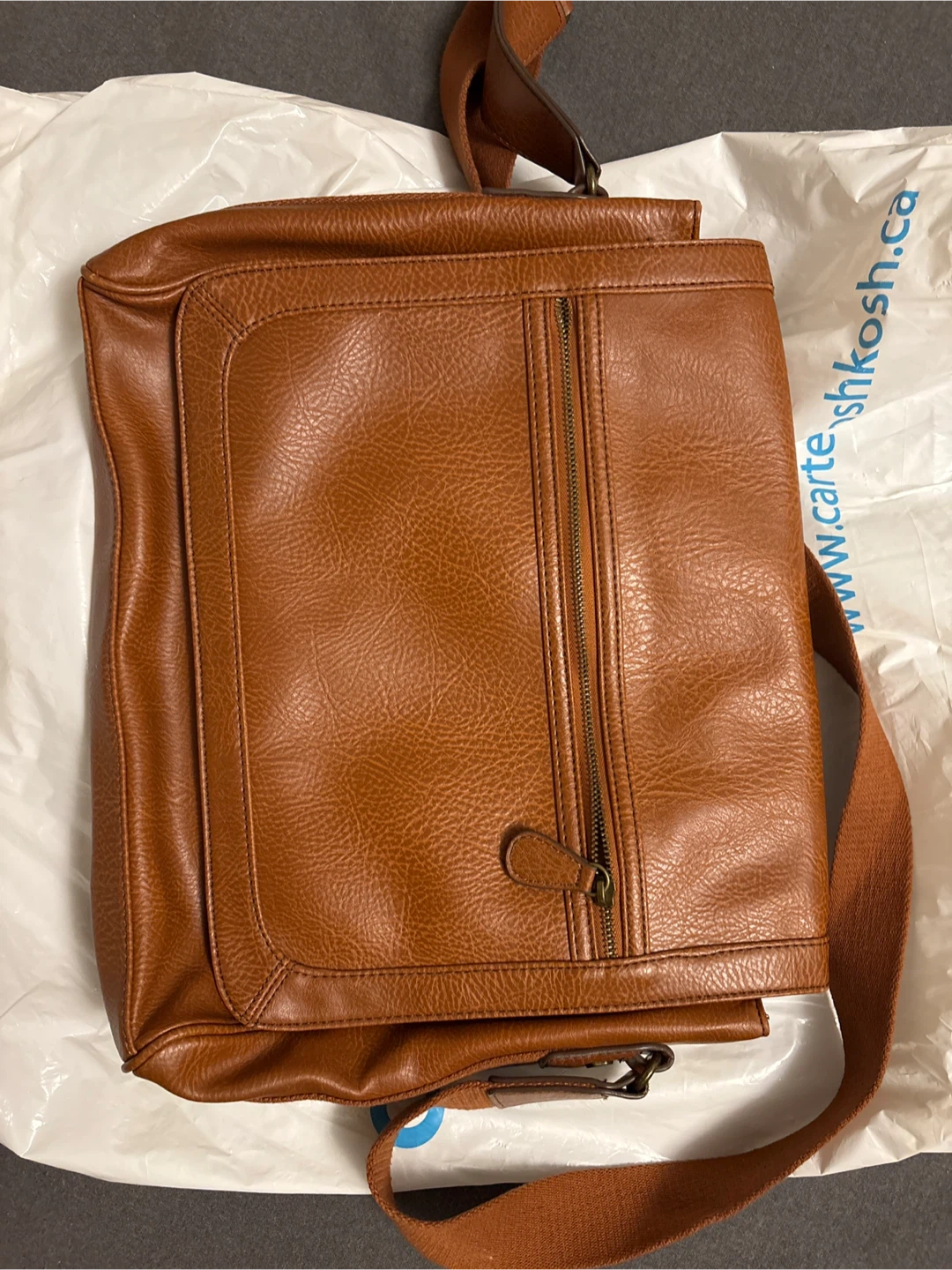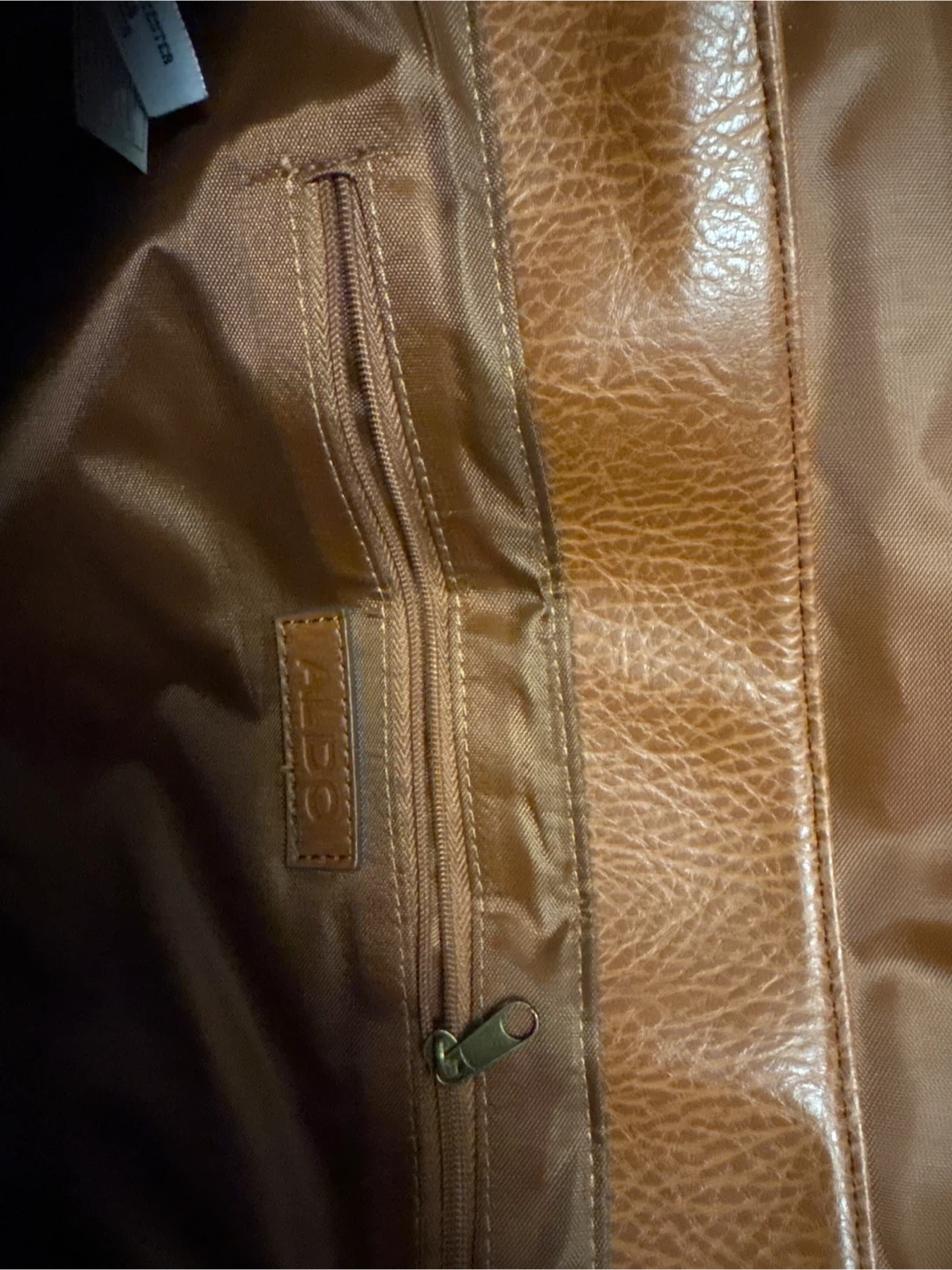 Here's a gently used Aldo messenger bag in a nice brown colour. It's made with 100% PVC body and 100% polyester lining. Perfect for carrying your essentials while looking stylish!
