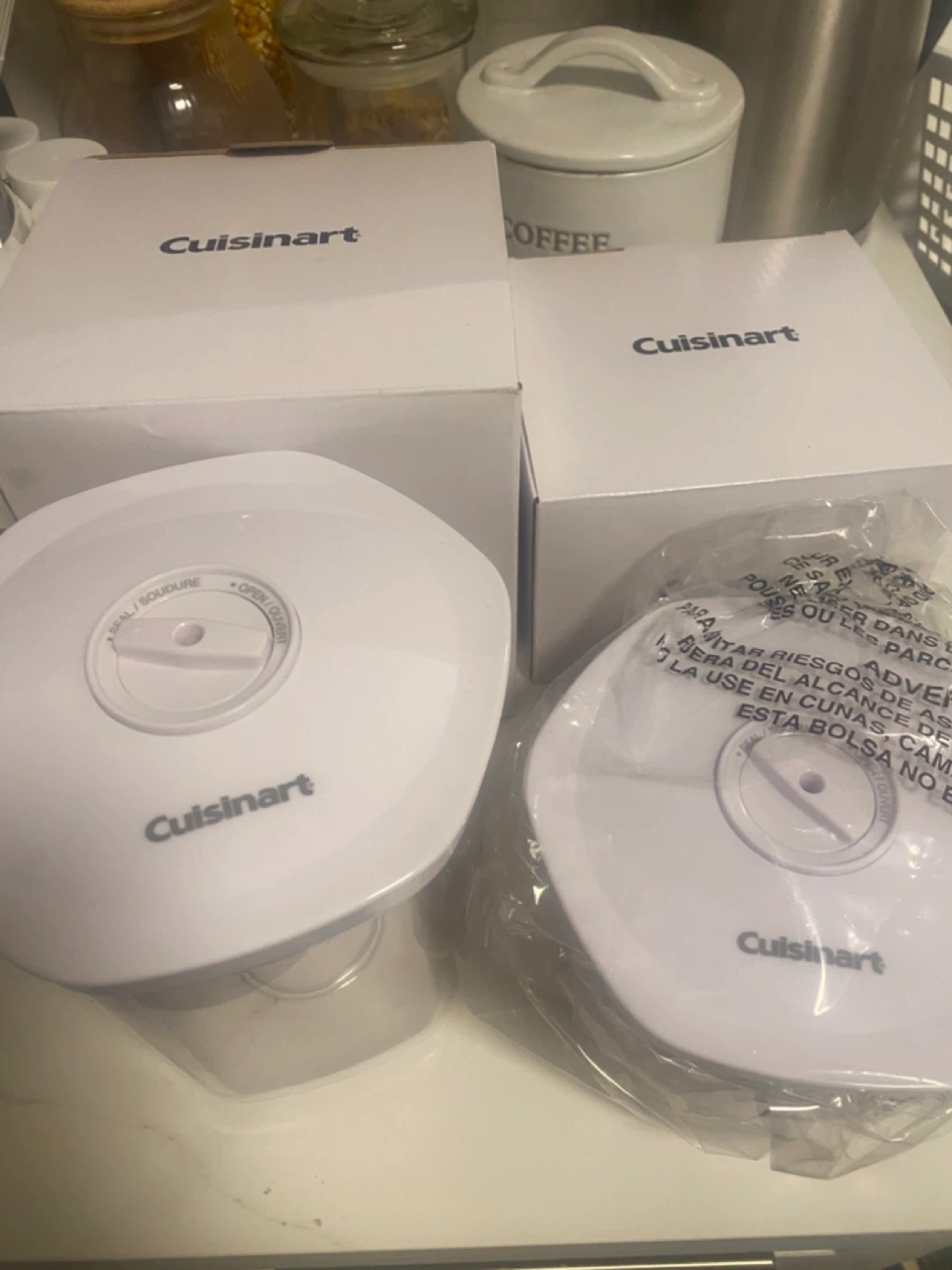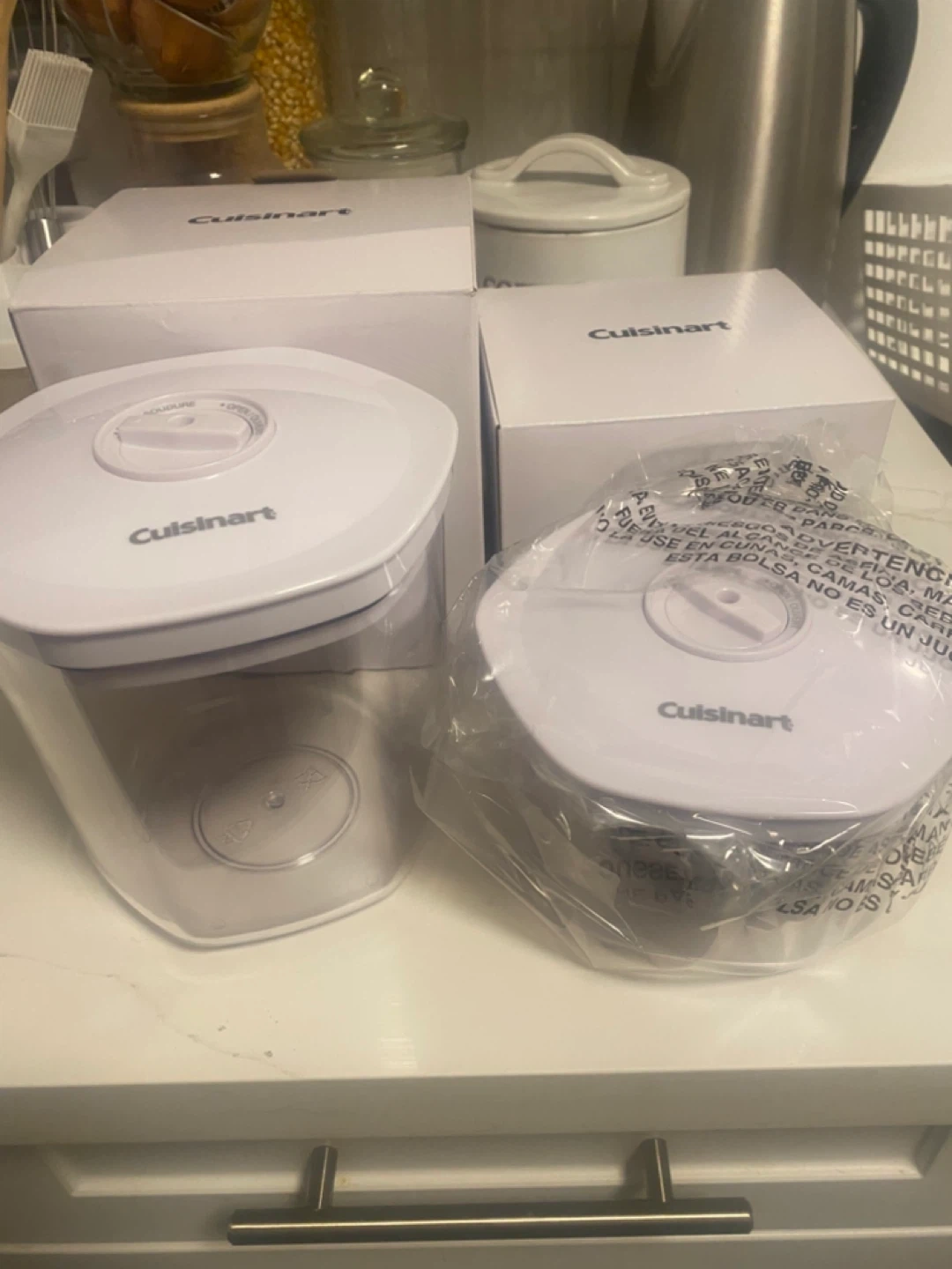 I have some brand new Cuisinart airtight food storage containers still in their original packaging! They're great for keeping your food fresh and organized. The boxes are included!