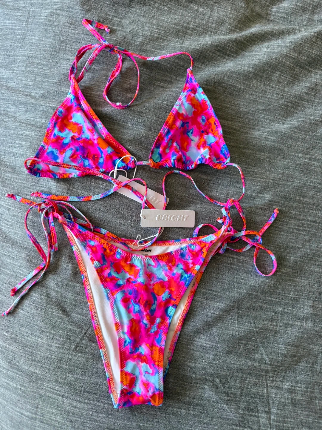 Selling a brand new Bright Melody bikini set in the Primavera pattern! The set includes both the top and bottom. The original price was $43.00 for each part , so this is a great deal!