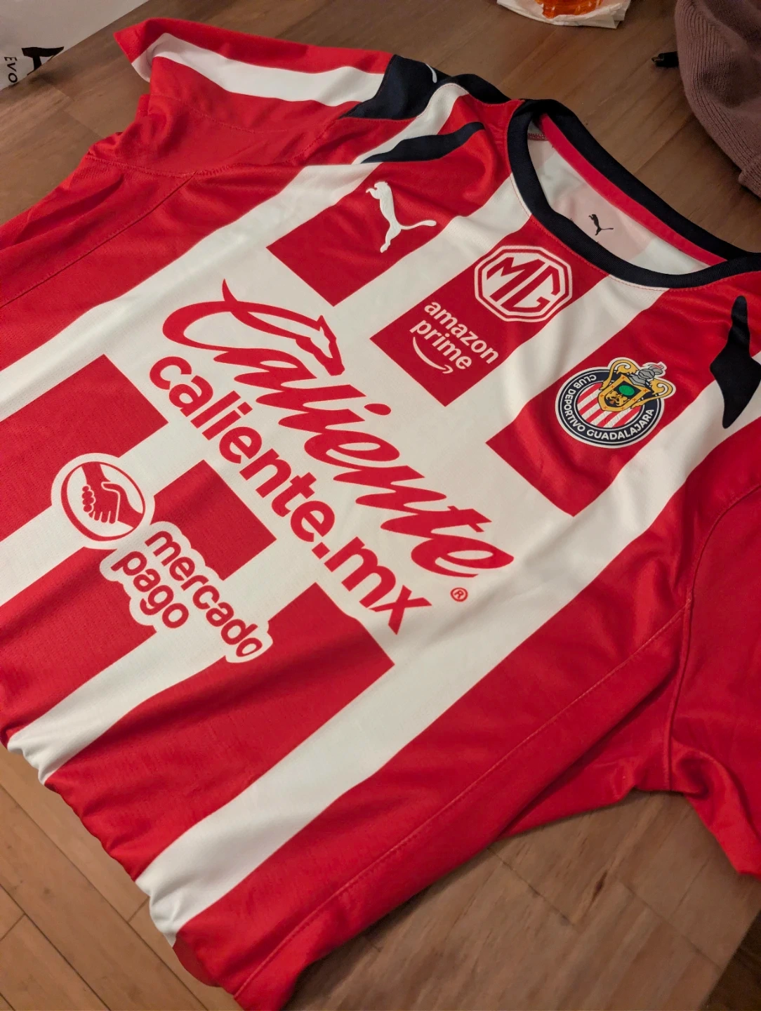 Selling a Puma Chivas Guadalajara soccer jersey. It features the Puma logo and the Chivas Guadalajara team crest. Great for soccer fans!