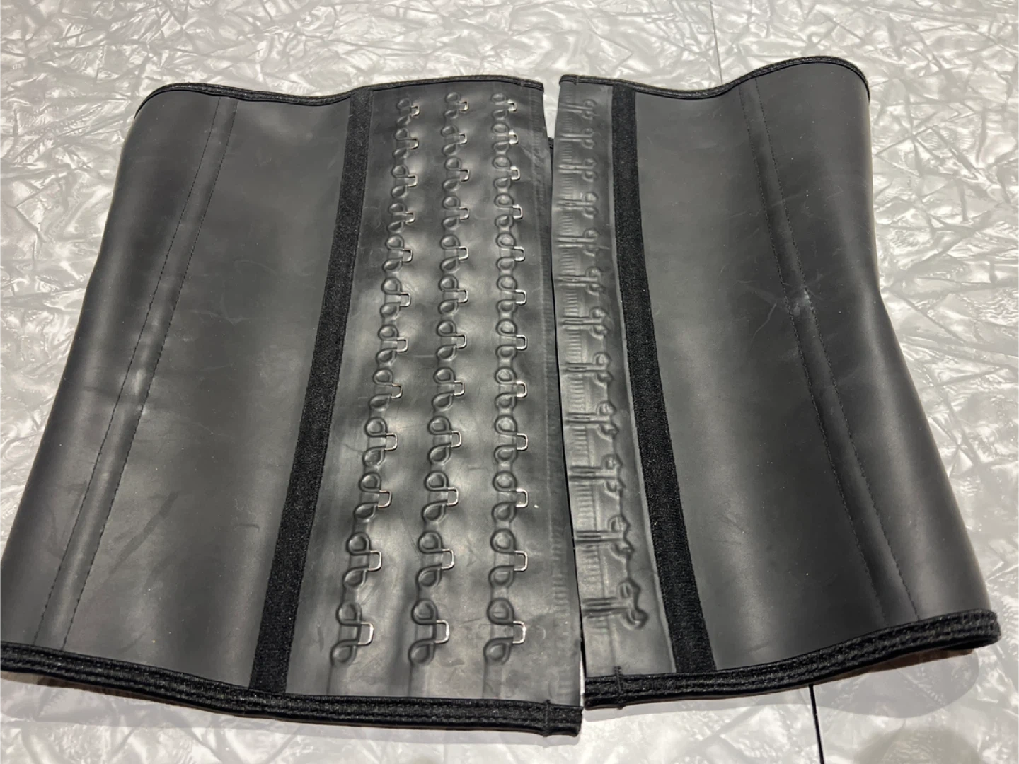 I'm selling a black waist trainer. It is in good condition and is made of a flexible material. It has hook-and-eye closures for adjustable sizing, so you can get the perfect fit!