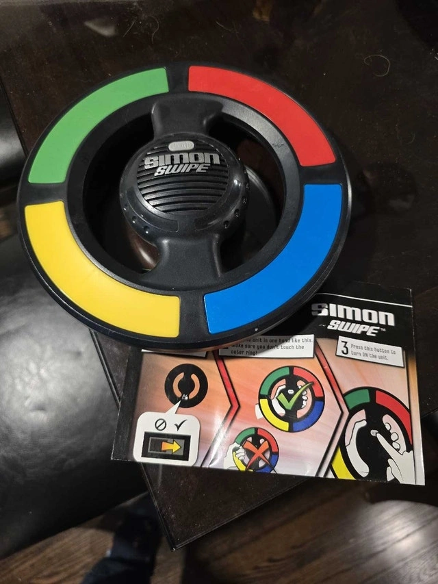 Get ready to test your memory and reflexes with the Simon Swipe game! This pre-owned game is in great shape and ready for hours of fun. Swipe, flick, and tap to follow the light sequences, challenging yourself and your friends. Requires 3 AA batteries (not included). It's your chance to own a piece of nostalgic fun! I've priced this Simon Swipe competitively for quick sale. If the ad is up, it's available!