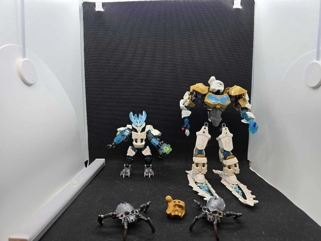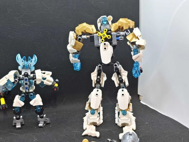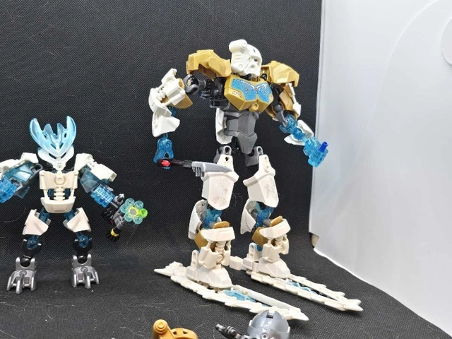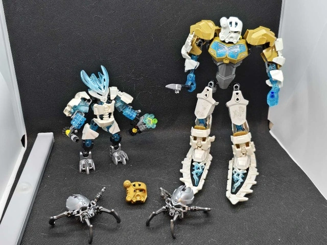 Bionicle Kopaka - Master of Ice (70788) Bionicle Protector of Ice (Set 70782). This lot includes two, incomplete (about 90%), Bionicle figures and two miniature spiders and is in used condition. What you see is what you get. These Lego Bionicle sets offer hours of creative play and display possibilities. Perfect for collectors and Lego enthusiasts alike, these sets are ready to embark on new adventures in your collection. $40 or best offer. Cash only.