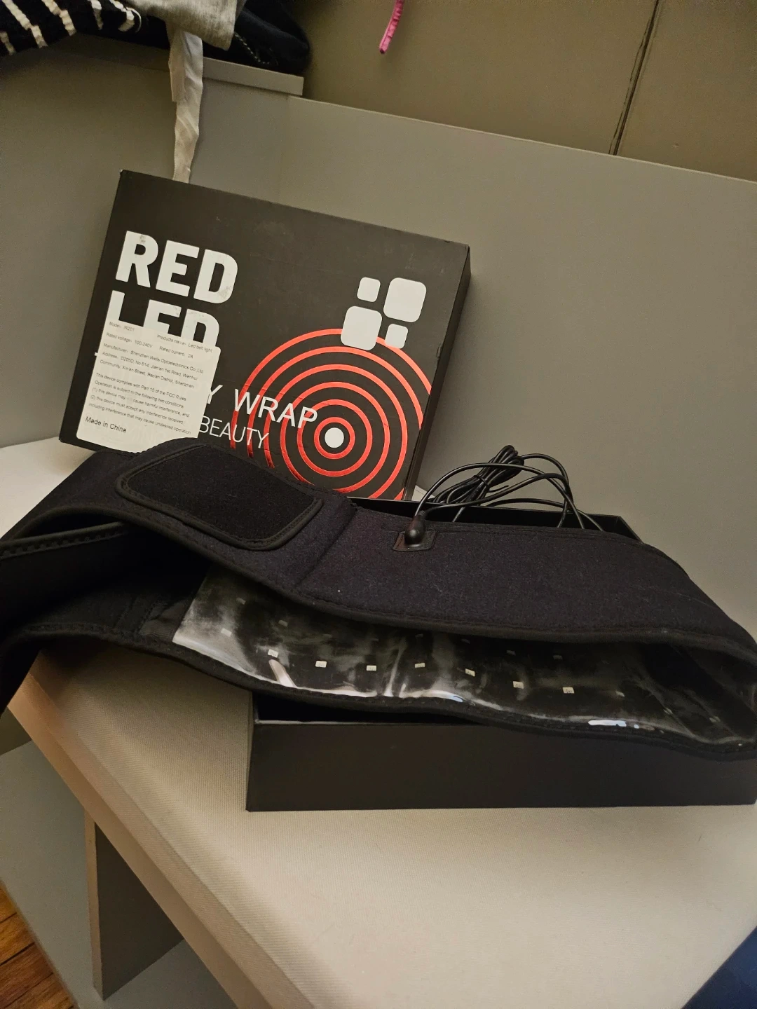 Selling a Red LED Belt Light by Y Wrap Beauty. It comes with its original box and components. This LED belt light is designed for beauty purposes. It's in great condition and ready for a new owner!