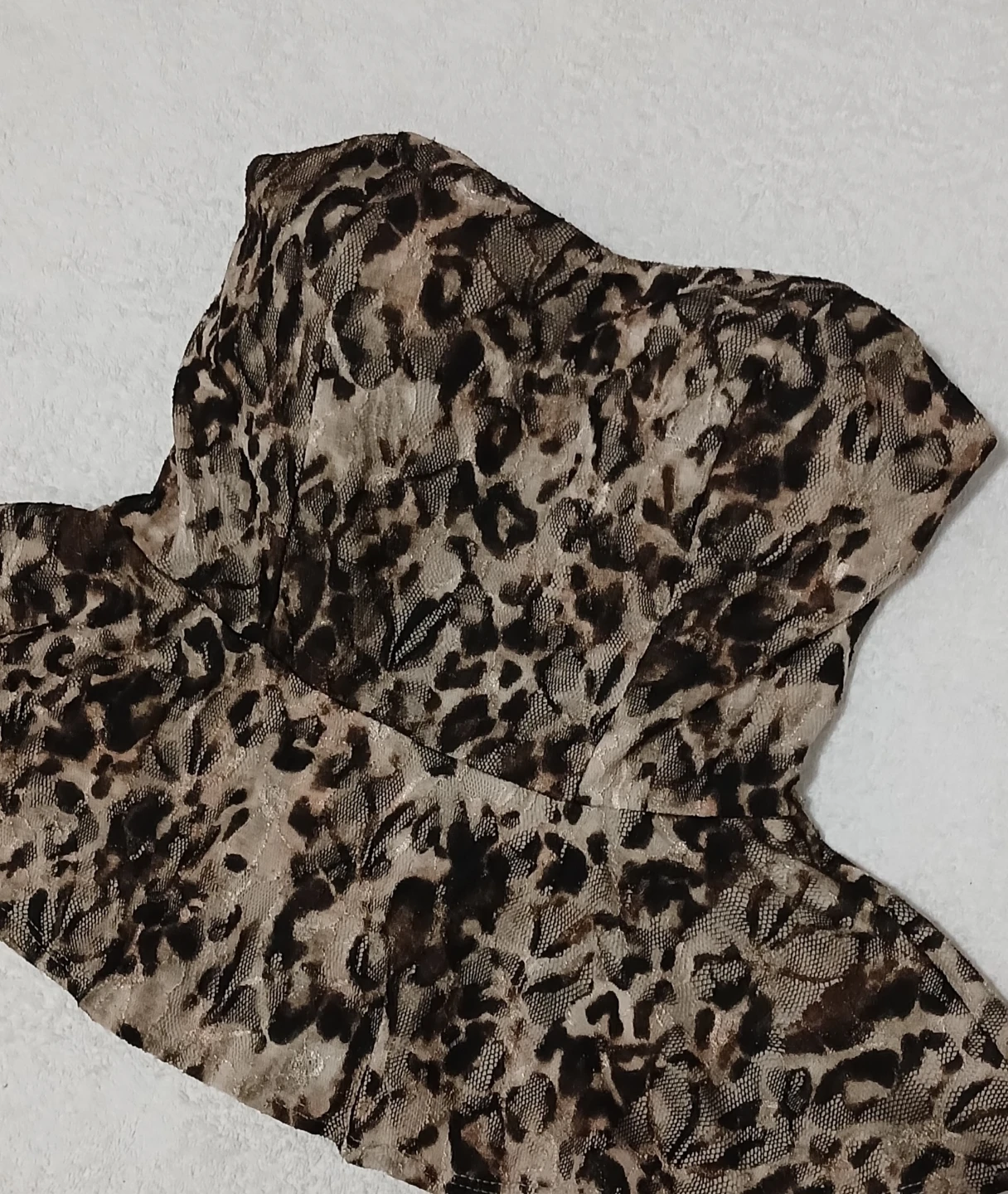 Here's a cute strapless peplum top with a leopard print! It's perfect for a night out or a special occasion. The peplum style adds a touch of elegance and the strapless design is both trendy and flattering