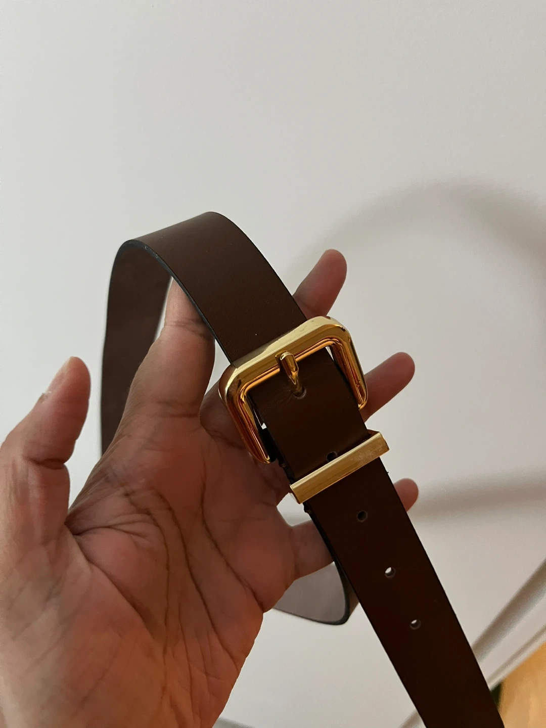 H&M Women’s Brown Leather Belt with Gold Buckle
