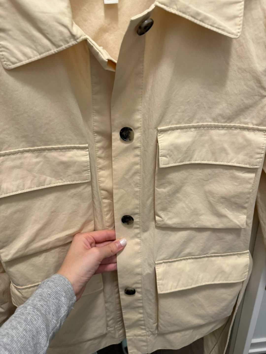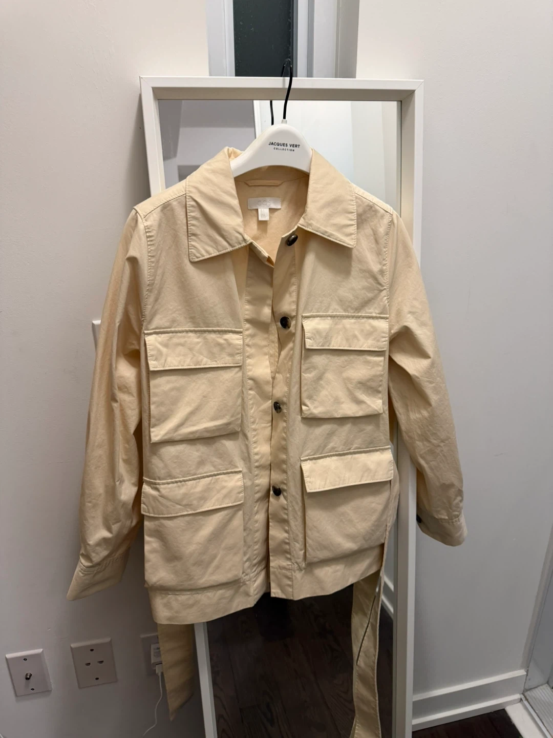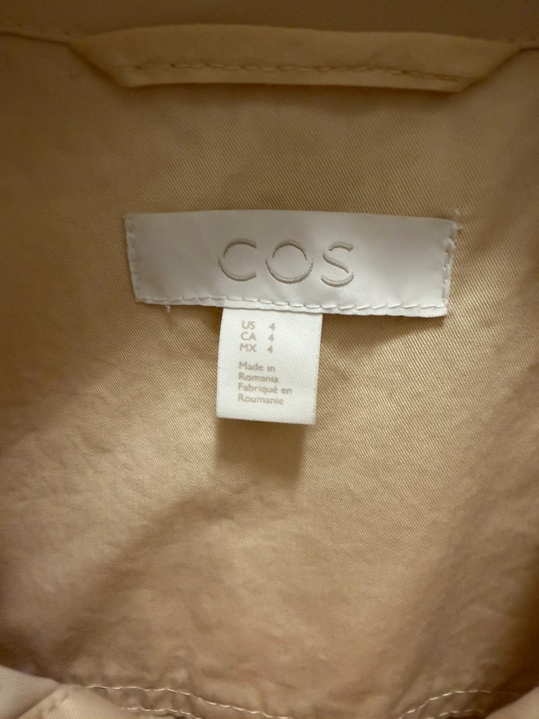 Selling a COS jacket in a lovely beige colour. It's a size 4. The material is 100% cotton