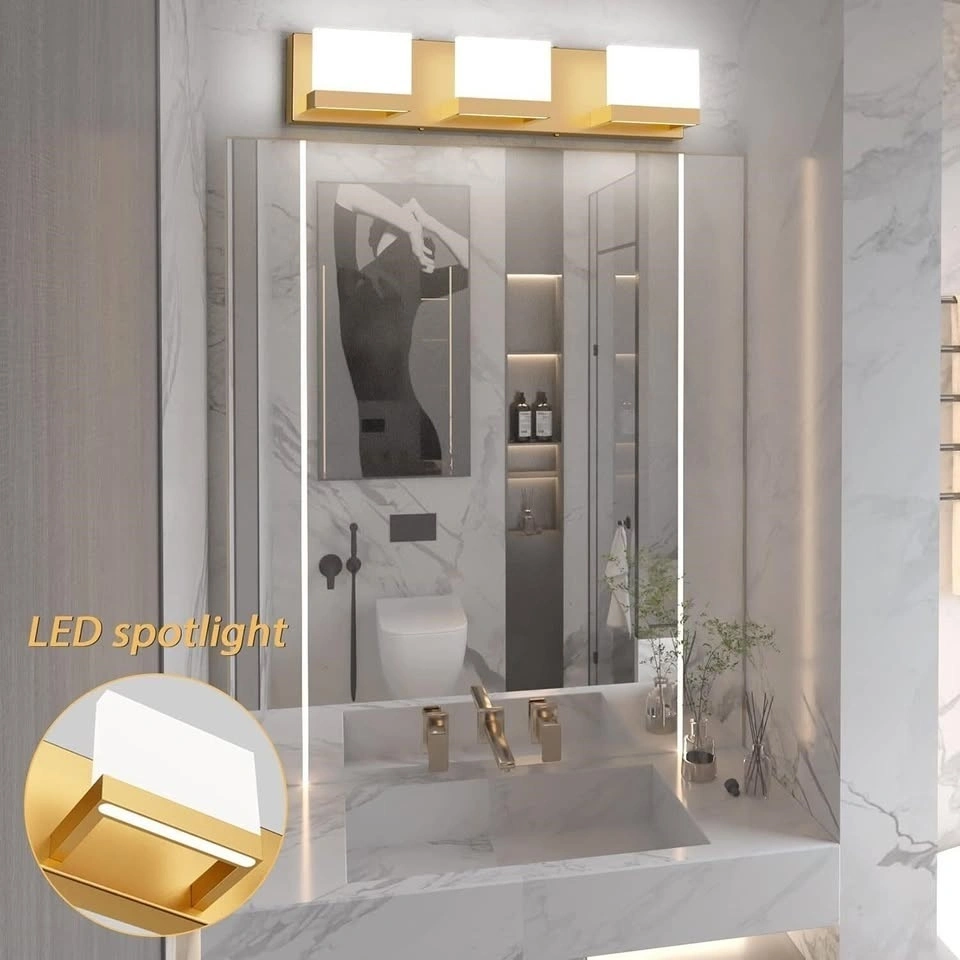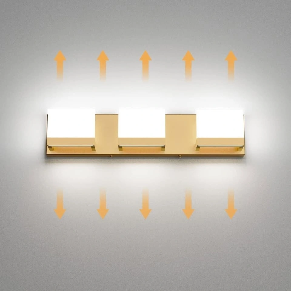 Double output light effect: Up and down light design, 360 Degree light area, using 11 mm thick frosted acrylic lampshade, bright and not dazzling. Easy to Install: The Gold Bathroom Vanity Light Fixtures are Hard Wired. No switch or cord on these bathroom light fixtures. Just connect to the reserved wire directly. The Gold Vanity Lights are suitable for US junction box standard. High Quality Material: Matte gold finishing aluminum, strong corrosion resistance. Solid thick frosted acrylic shade, releasing bright light effect. (LED Light include) Modern and Minimalist: The Gold Vanity Lights creating a beautiful lighting effect. The luxurious and fashionable gold bathroom vanity light fixtures design accords with the ultimate pursuit of modern people. The Gold Bathroom Vanity Light Fixtures comes from LED source and with a uniform light-emitting by going through the frosted acrylic. Safety: Using IC card constant current driver with short circuit protection design, intelligent control circuit, overload protection and current stable.