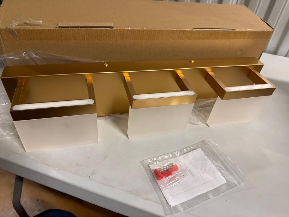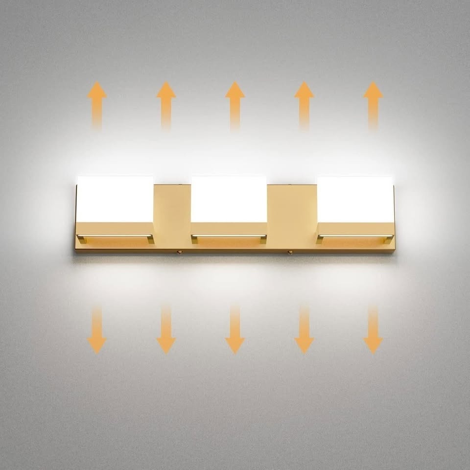 Double output light effect: Up and down light design, 360 Degree light area, using 11 mm thick frosted acrylic lampshade, bright and not dazzling. Easy to Install: The Gold Bathroom Vanity Light Fixtures are Hard Wired. No switch or cord on these bathroom light fixtures. Just connect to the reserved wire directly. The Gold Vanity Lights are suitable for US junction box standard. High Quality Material: Matte gold finishing aluminum, strong corrosion resistance. Solid thick frosted acrylic shade, releasing bright light effect. (LED Light include) Modern and Minimalist: The Gold Vanity Lights creating a beautiful lighting effect. The luxurious and fashionable gold bathroom vanity light fixtures design accords with the ultimate pursuit of modern people. The Gold Bathroom Vanity Light Fixtures comes from LED source and with a uniform light-emitting by going through the frosted acrylic. Safety: Using IC card constant current driver with short circuit protection design, intelligent control circuit, overload protection and current stable.