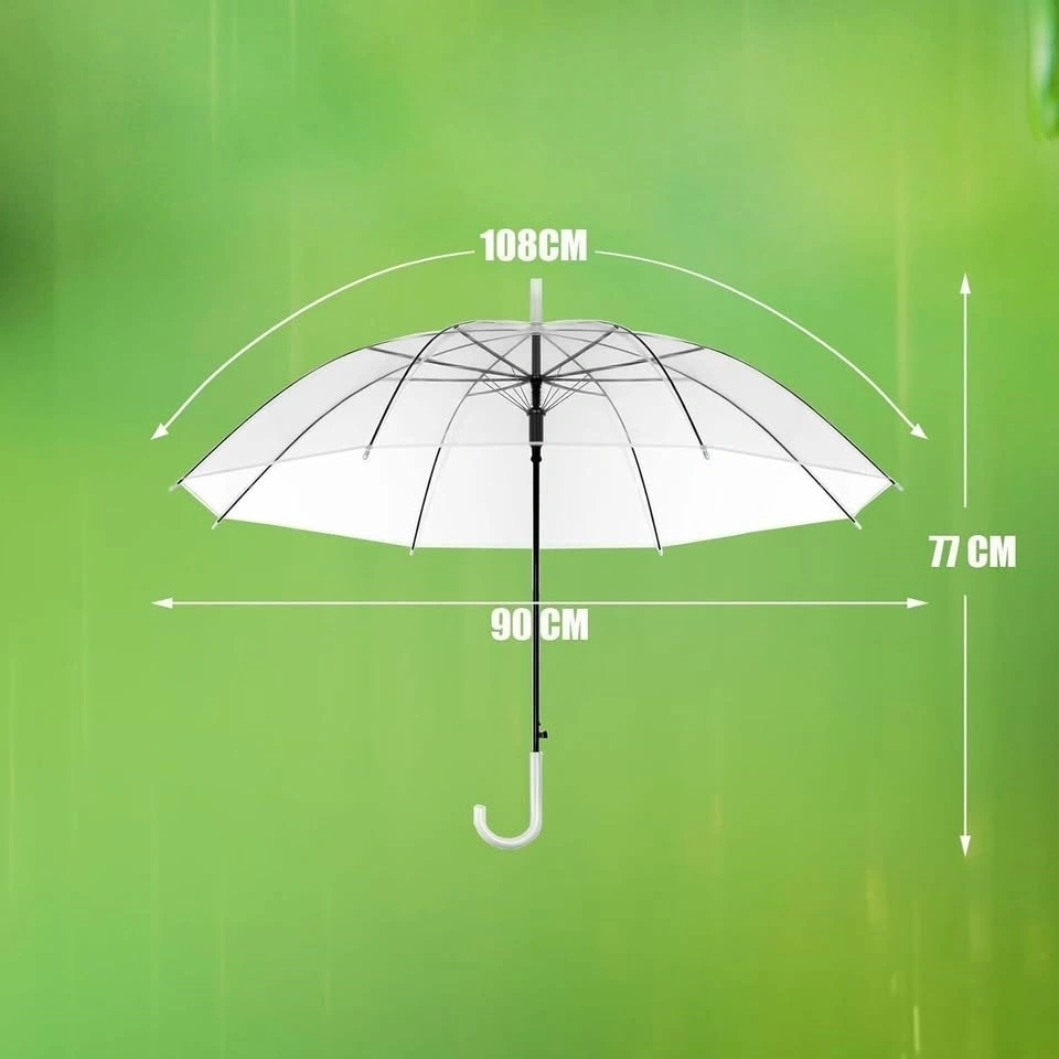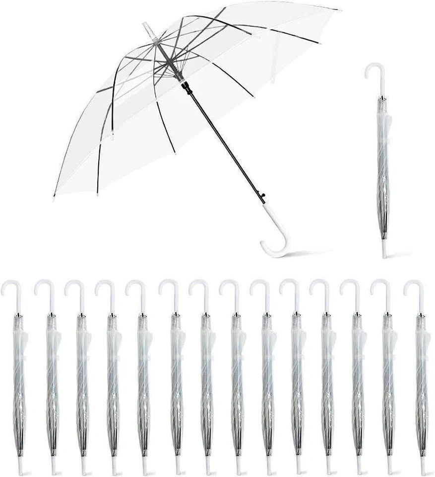 BULK PACKAGE: Set includes 15 transparent umbrellas perfect for group events, weddings, and outdoor occasions, or art projects. Please Notice: 1. The opening diameter of the umbrella is 90CM(35.4 Inch). Before purchasing, please confirm whether it is suitable for your usage scenario. 2. Our umbrellas are only suitable for general light rain and decoration. Please do not use them on stormy days. 3. Our umbrellas are more often used for wedding decorations, DIY activities, and during light rain. AUTOMATIC OPERATION: Features convenient auto-open mechanism for quick deployment in sudden weather changes CLEAR DESIGN: High-visibility transparent canopy allows full view while providing complete rain protection VERSATILE USE: Ideal for wedding photography, golf outings, and everyday rain protection with its stylish transparent design PRACTICAL FEATURES: Equipped with comfortable curved handle, sturdy metal frame, and spacious 108-centimetre arc for excellent coverage.