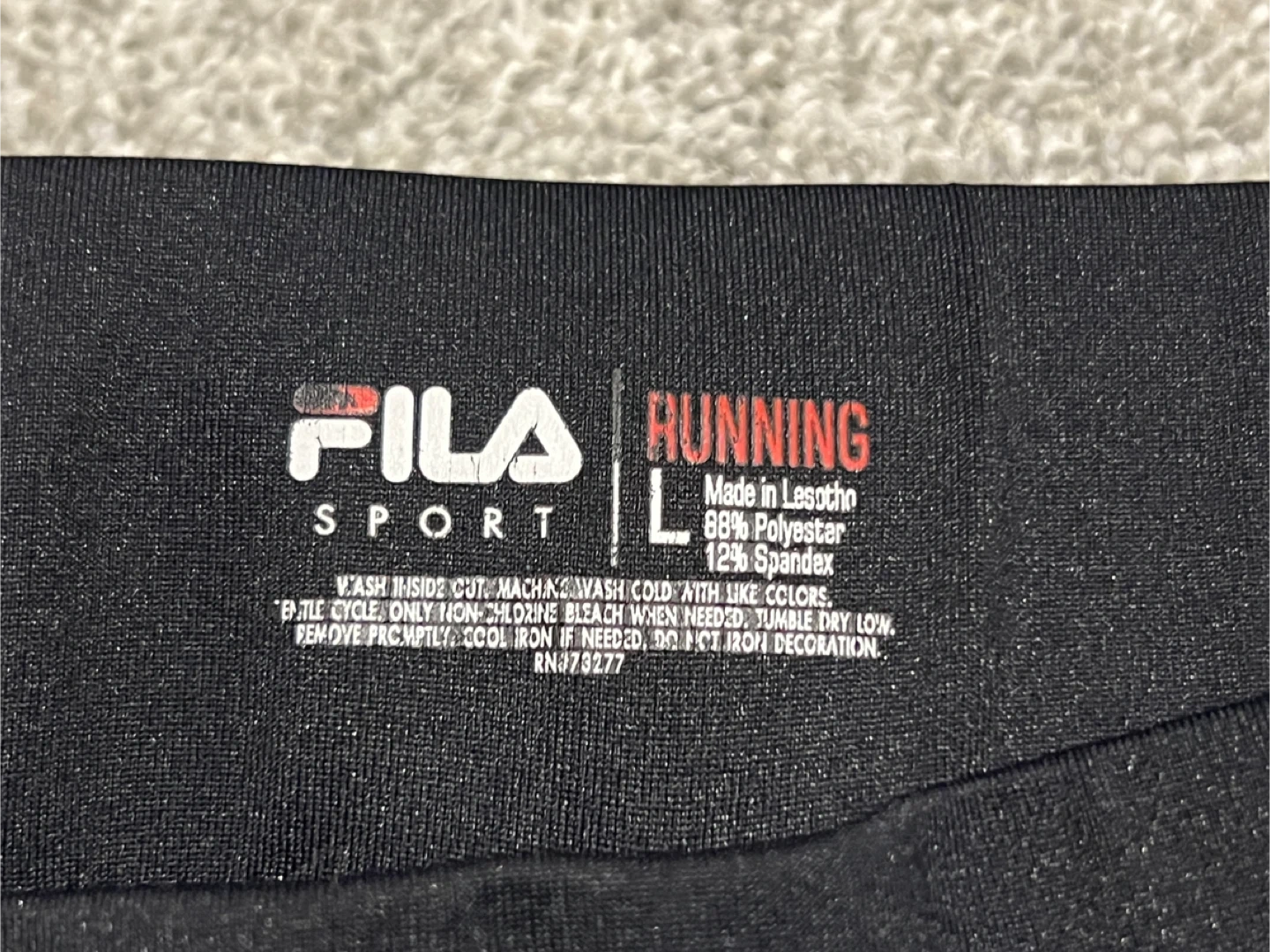 Selling a pair of Fila Sport running capri leggings in size L. They're black and made of 88% polyester and 12% spandex. Perfect for your workouts!