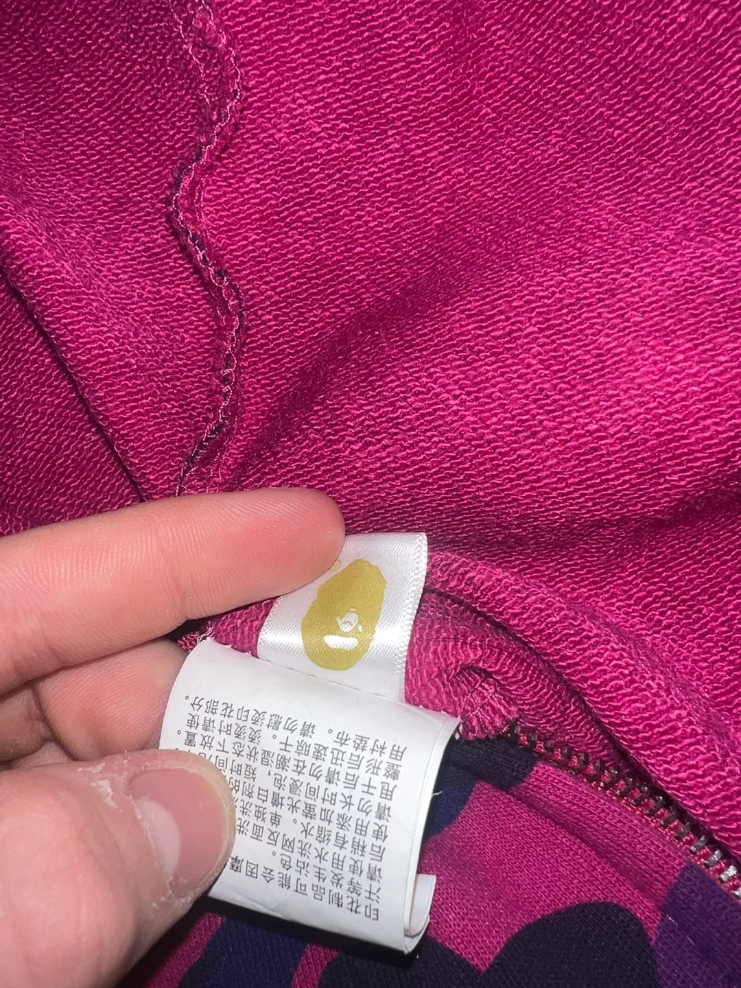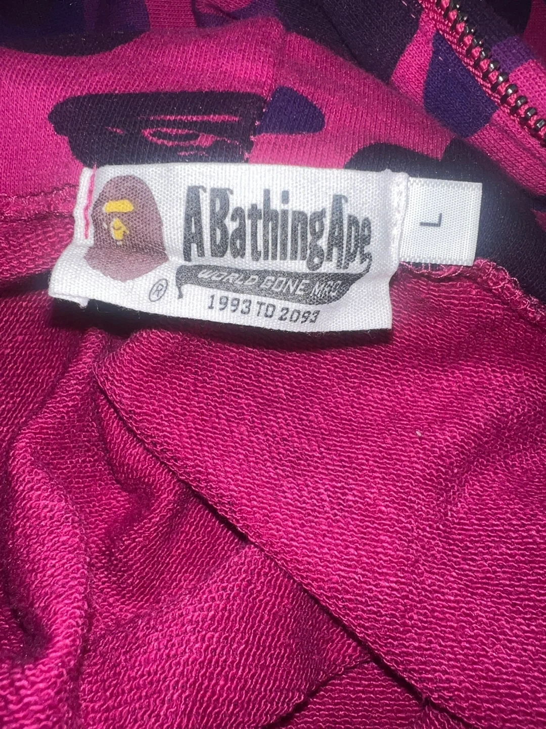 Selling an A Bathing Ape (BAPE) zip-up hoodie in size L. It's a cool camo design, made from 100% cotton. Perfect for adding some streetwear style to your wardrobe! Fits like medium fits like medium