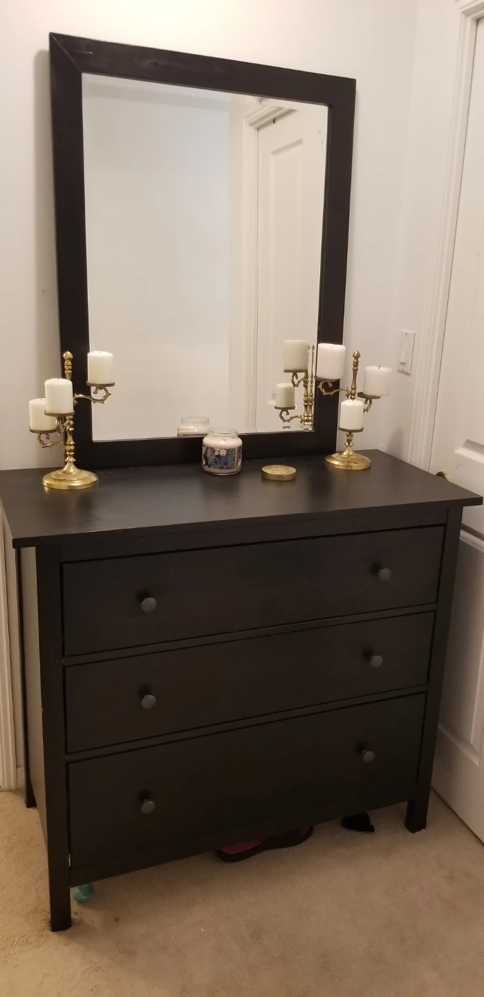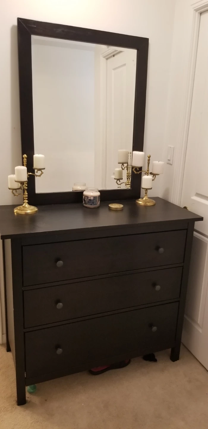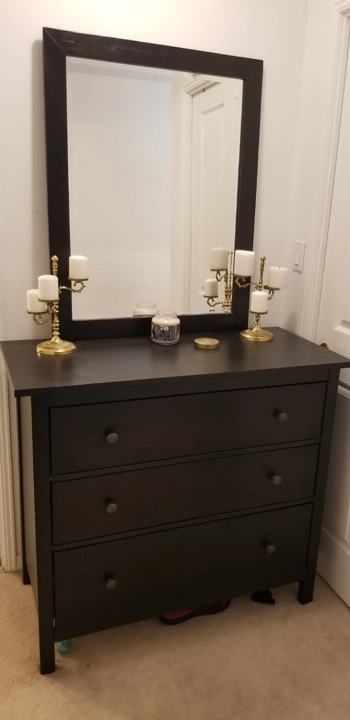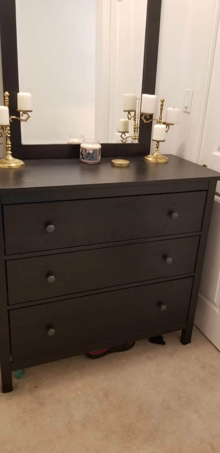 This black-brown Ikea Hemnes dresser offers both style and functionality for your bedroom storage needs. While it's a used item, it's still in good condition.