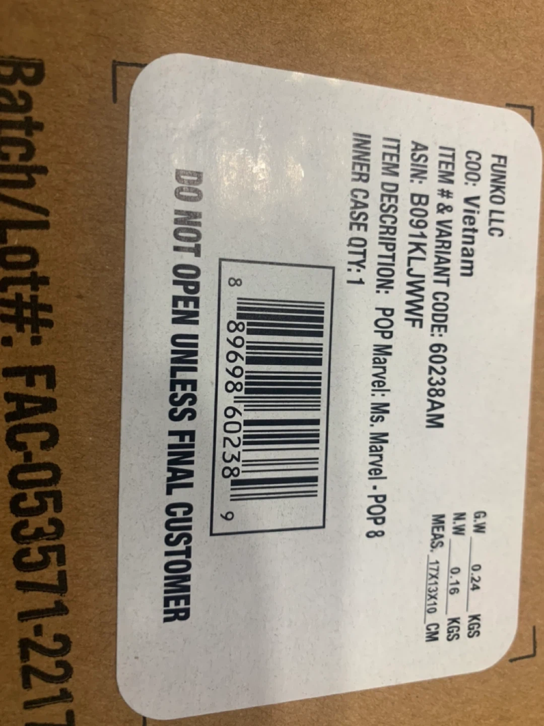 Selling a brand new, in-box Funko Pop! figure of Ms. Marvel (number 1084). This is an Amazon Exclusive, so it's a bit special! The box is in great condition, perfect for collectors. Would love for her to find a good home!